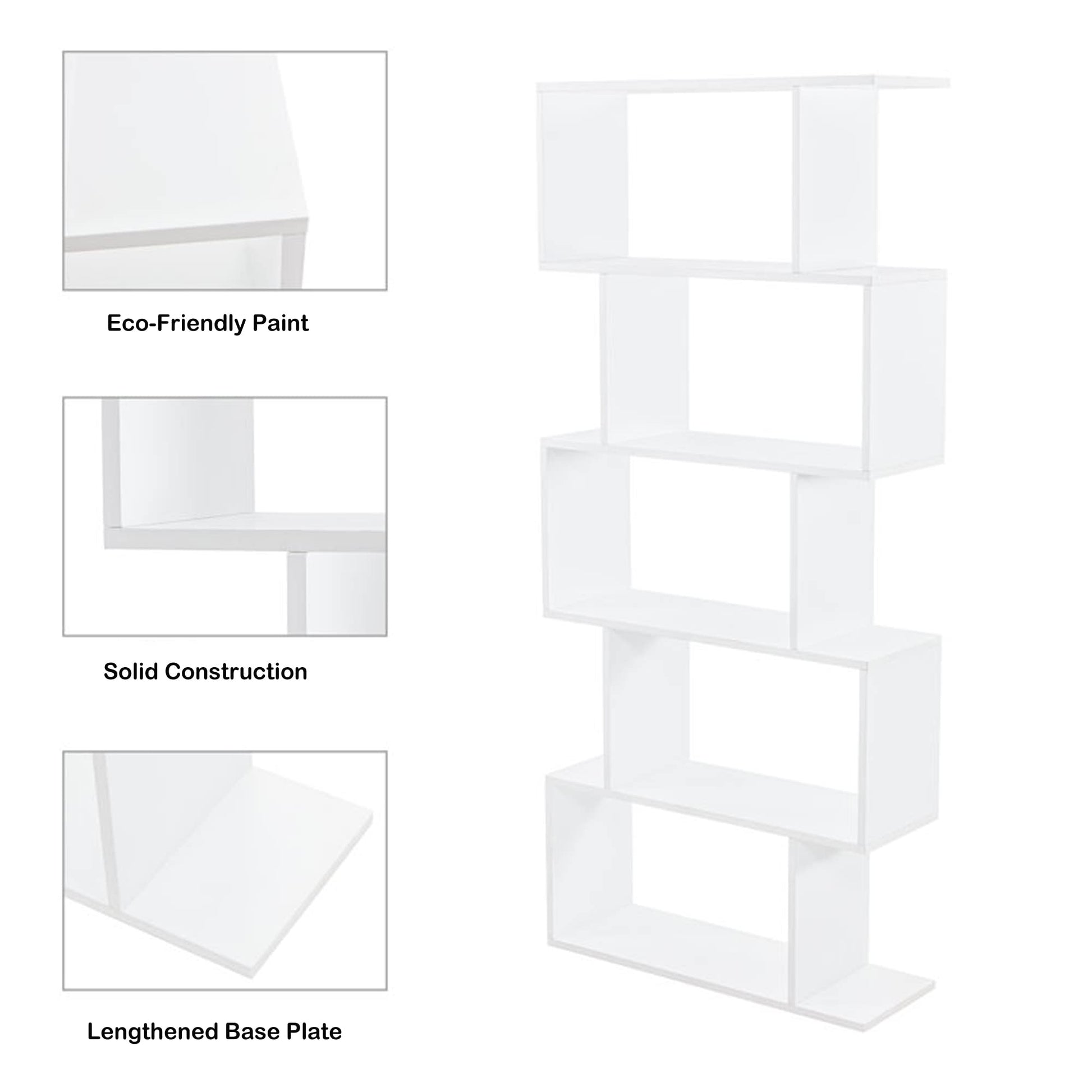 5-Tier Geometric Bookcase, Freestanding S Shaped Bookshelf, Modern Multifunctional Display Shelves
