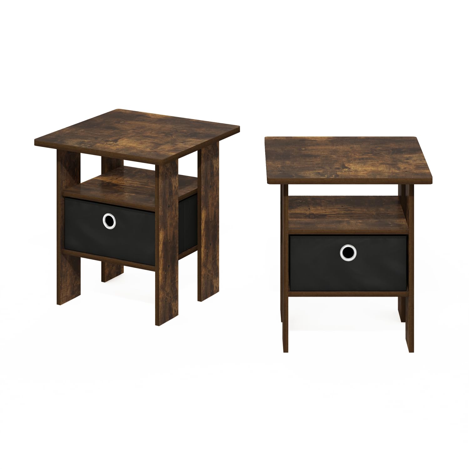 Andrey End Table Nightstand with Bin Drawer, Amber Pine/Black, Set of 2