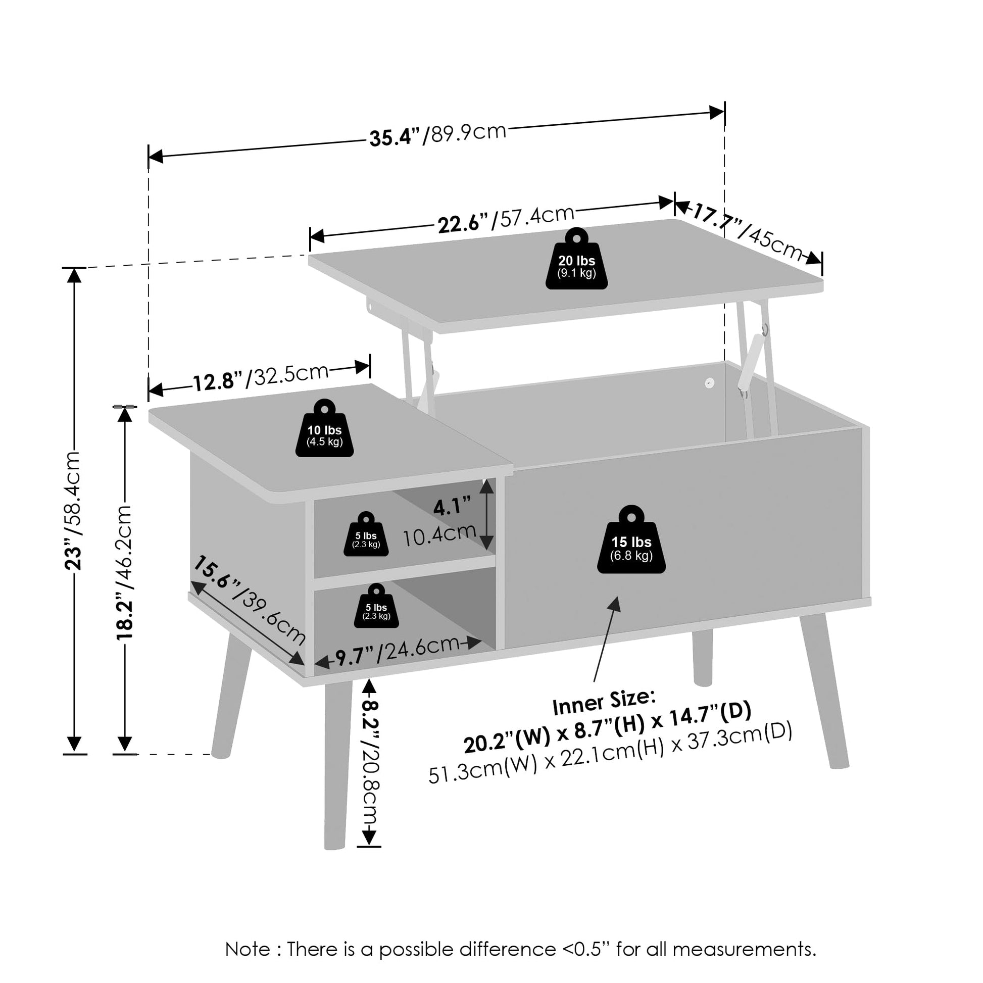 jensen Wooden Leg Lift Top Coffee Table with Hidden Compartment and Side Open Storage