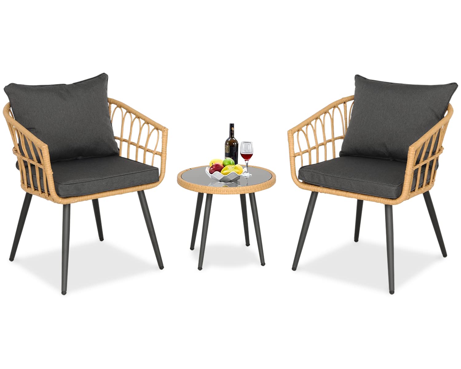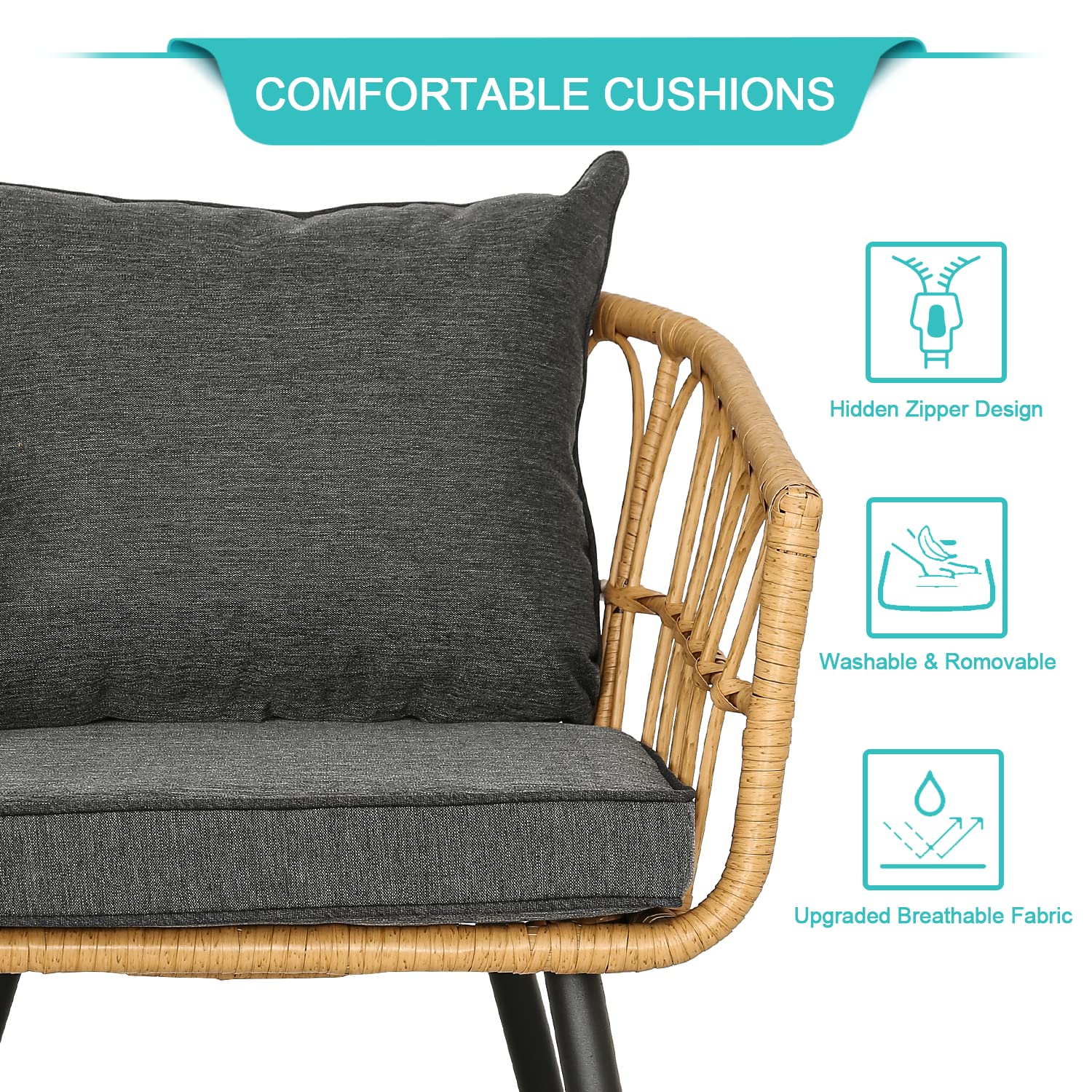 - HIGH-QUALITY MATERIAL- Compared with rattan woven chairs, this resin material Imitation rattan design allows you to use it for a long time without worrying about the rattan falling off. Non-slip mats can keep the patio chair set from sliding and scratching the floor.