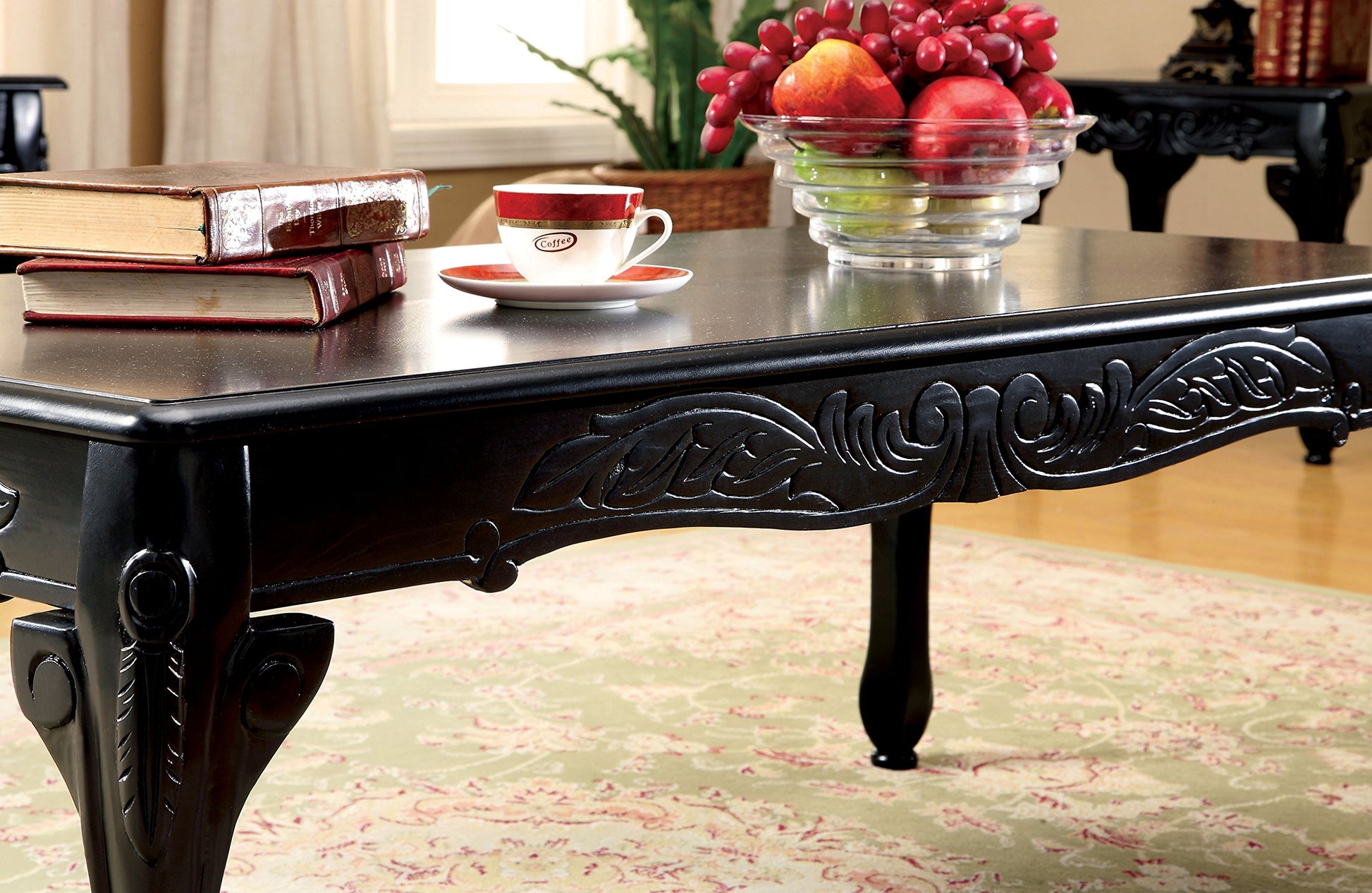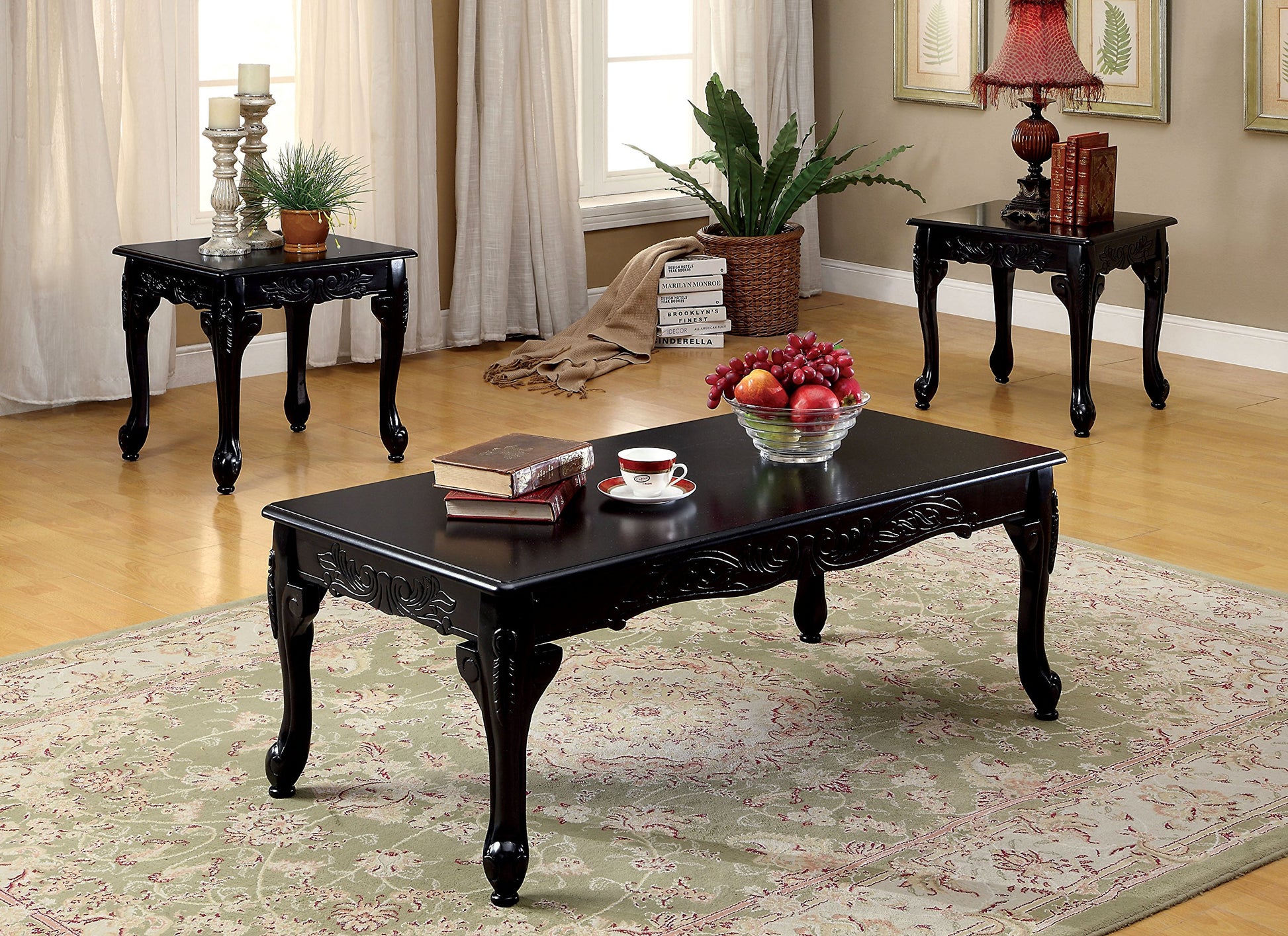 - Set includes: (1) Coffee Table and (2) End Tables; Black finish