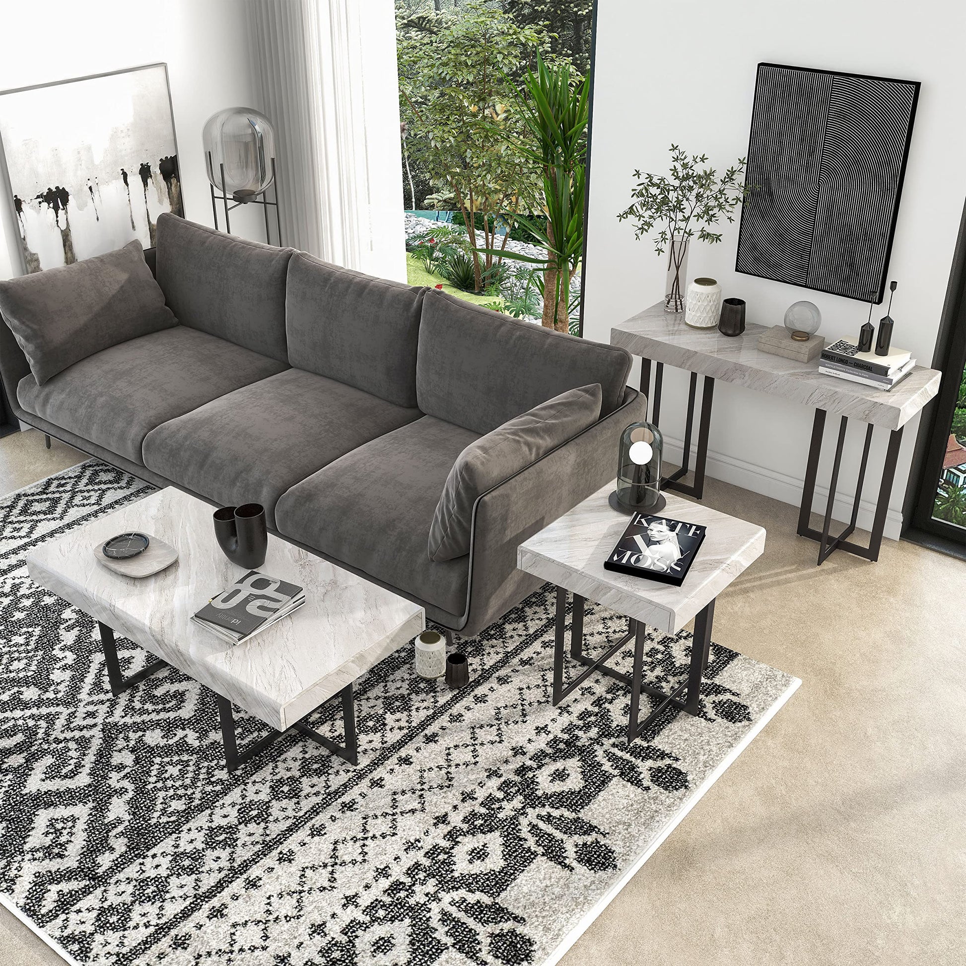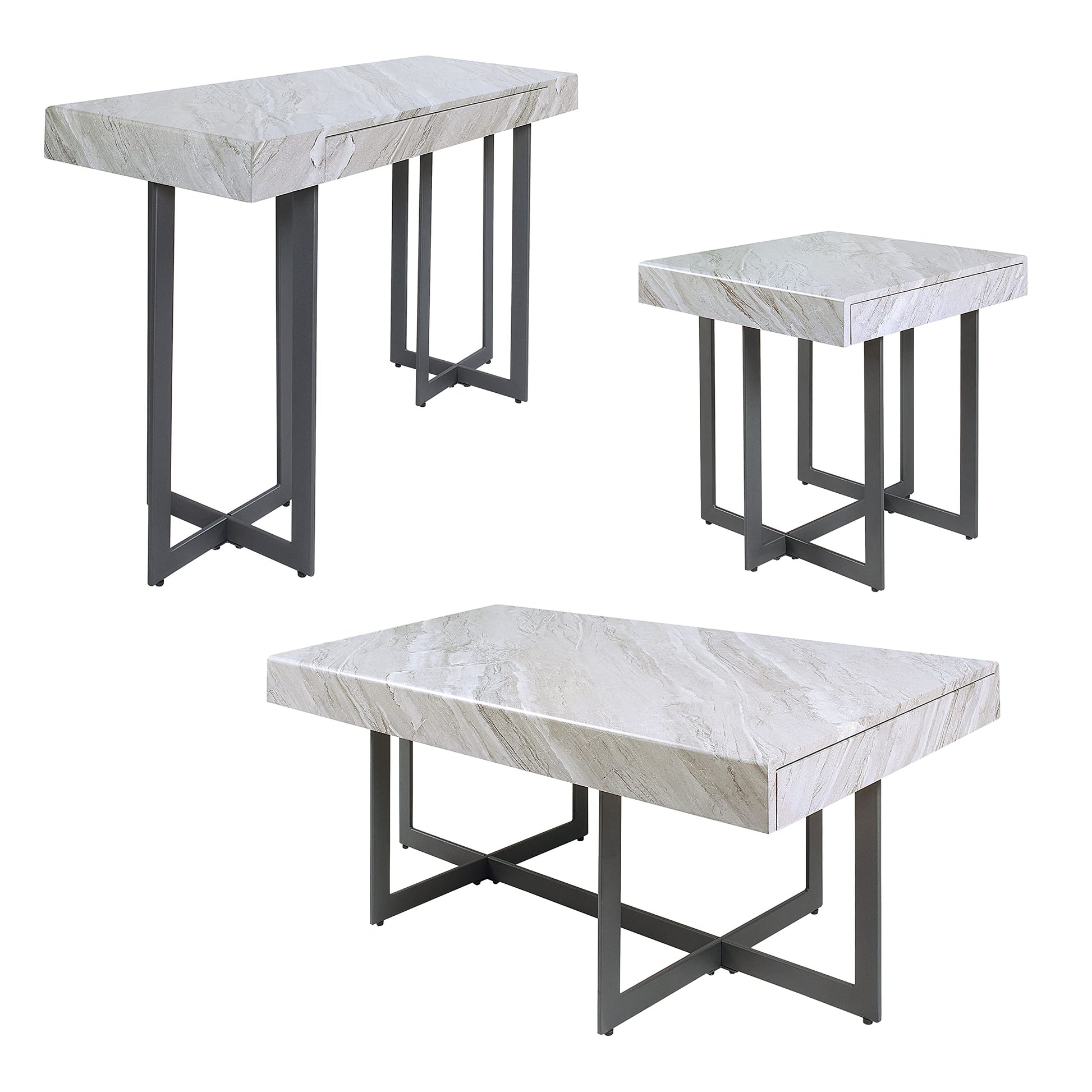 Willy Modern Storage Faux Marble Top 3-Piece Coffee, End and Sofa Table Set
