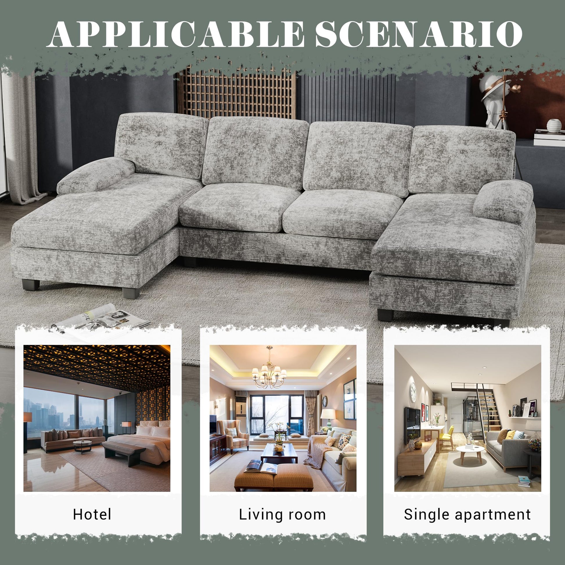 Convertible Sectional Sofa Couch, 4 Seat Sofa Set