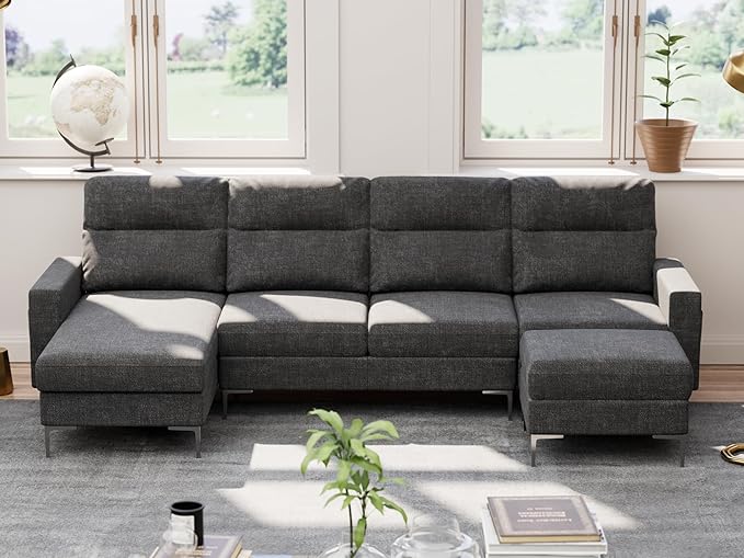 Convertible Sectional Sofa Couch, 4 Seat Sofa Set