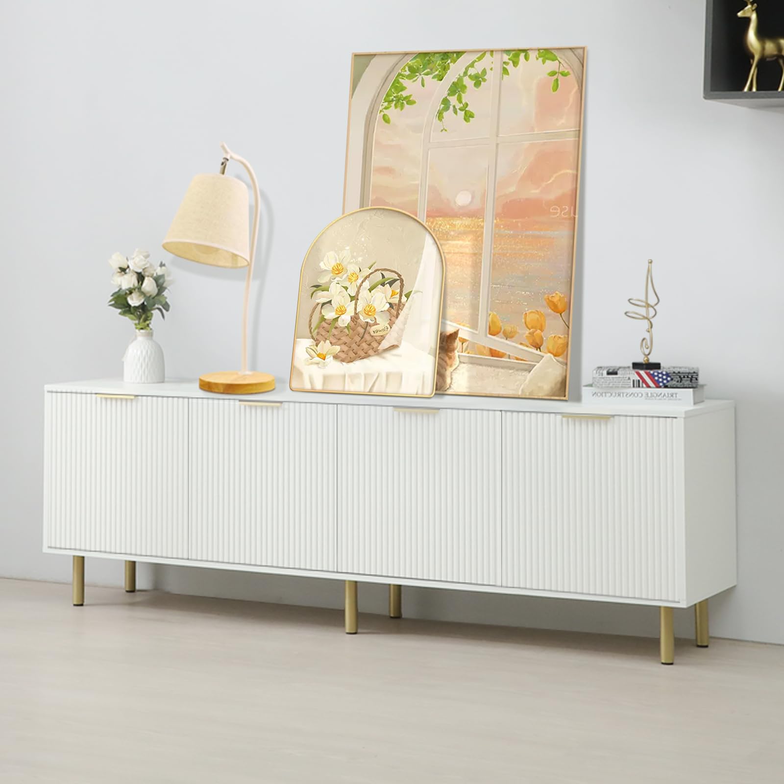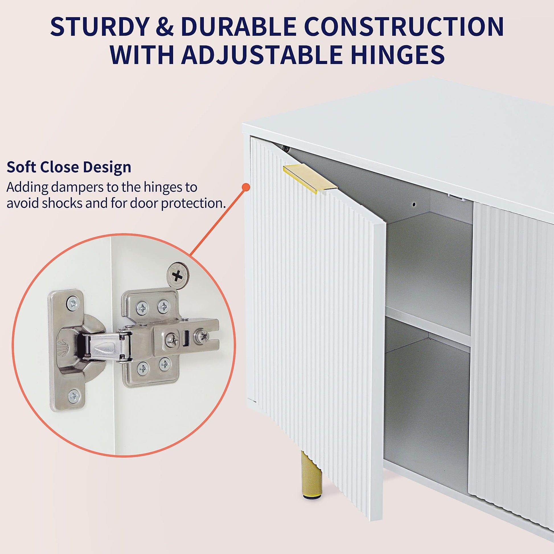 - This TV stand with storage cabinet and four-door locker with large space can provide large storage capacity space. The middle shelf is adjustable with 3 different options, providing large and flexible storage capacity space. The White TV Stands For Living Room or White TV Stand For Bedroom, etc is a beautiful place to store audio or video components, games or book.