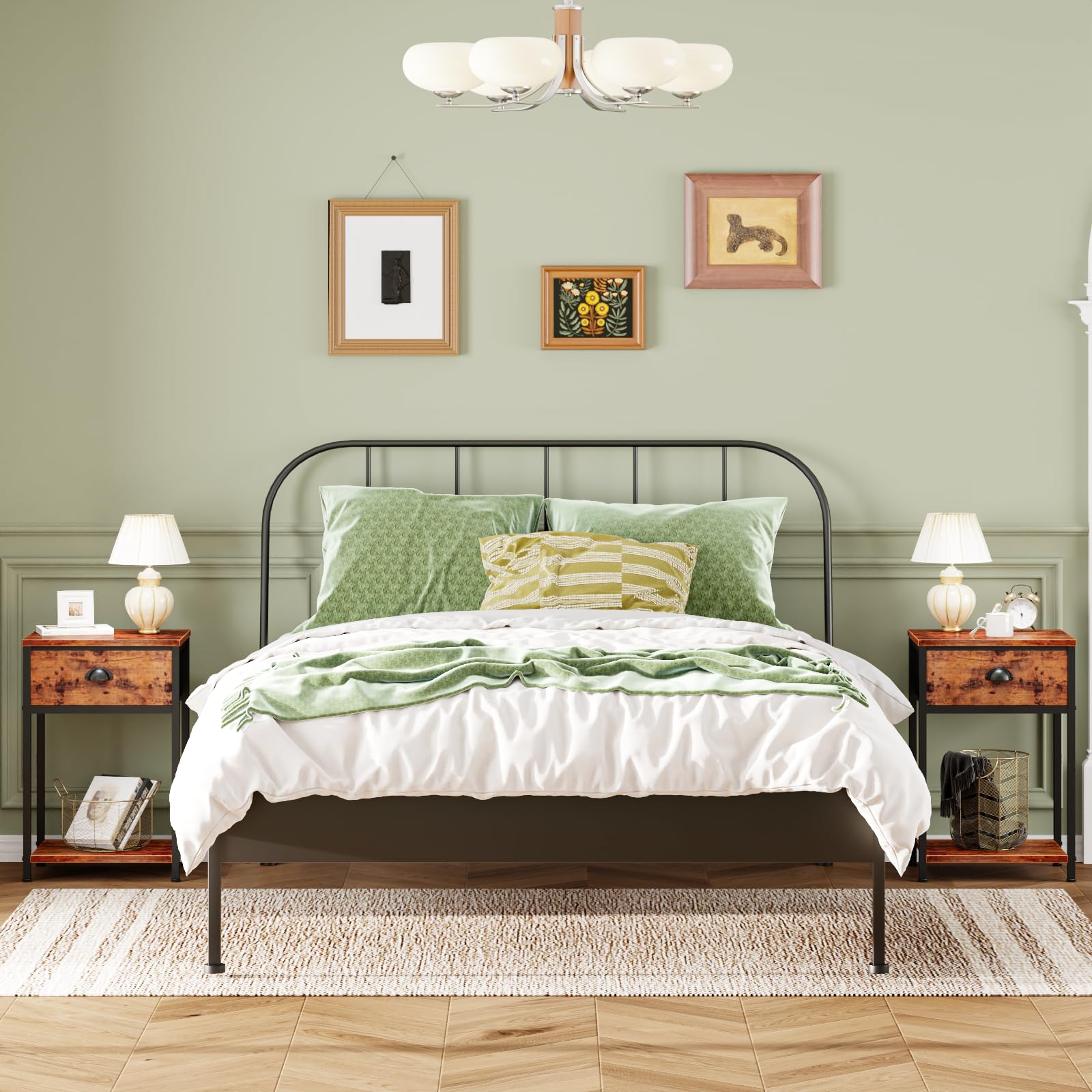 Nightstands Set of 2, Industrial End Table with Fabric Drawer and Storage Shelf, Retro Bedside Tables Organizer, Side Table for Living Room Bedroom, Rustic Brown
