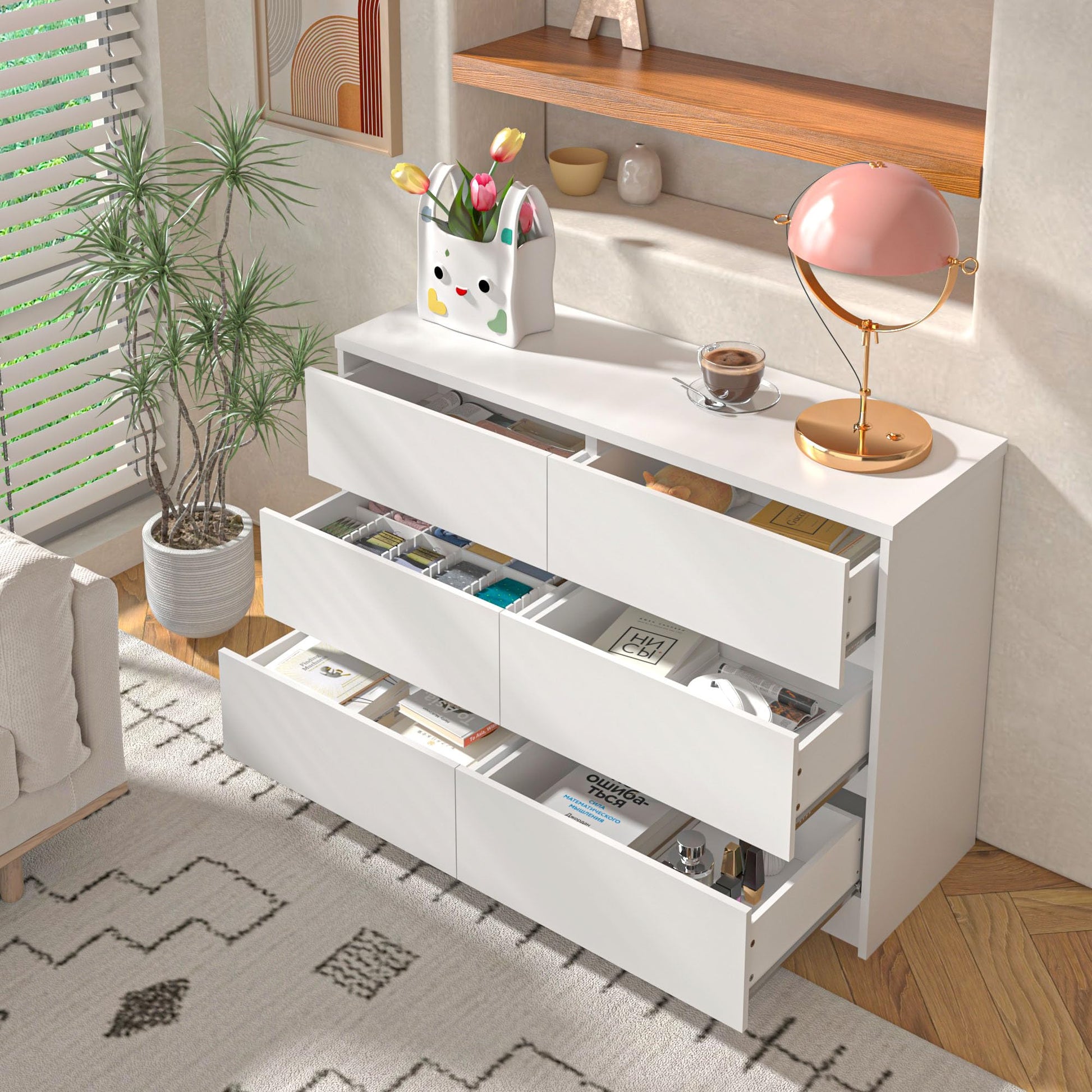 Modern White 6 Drawer Dresser for Bedroom, Living Room Chest of Drawers