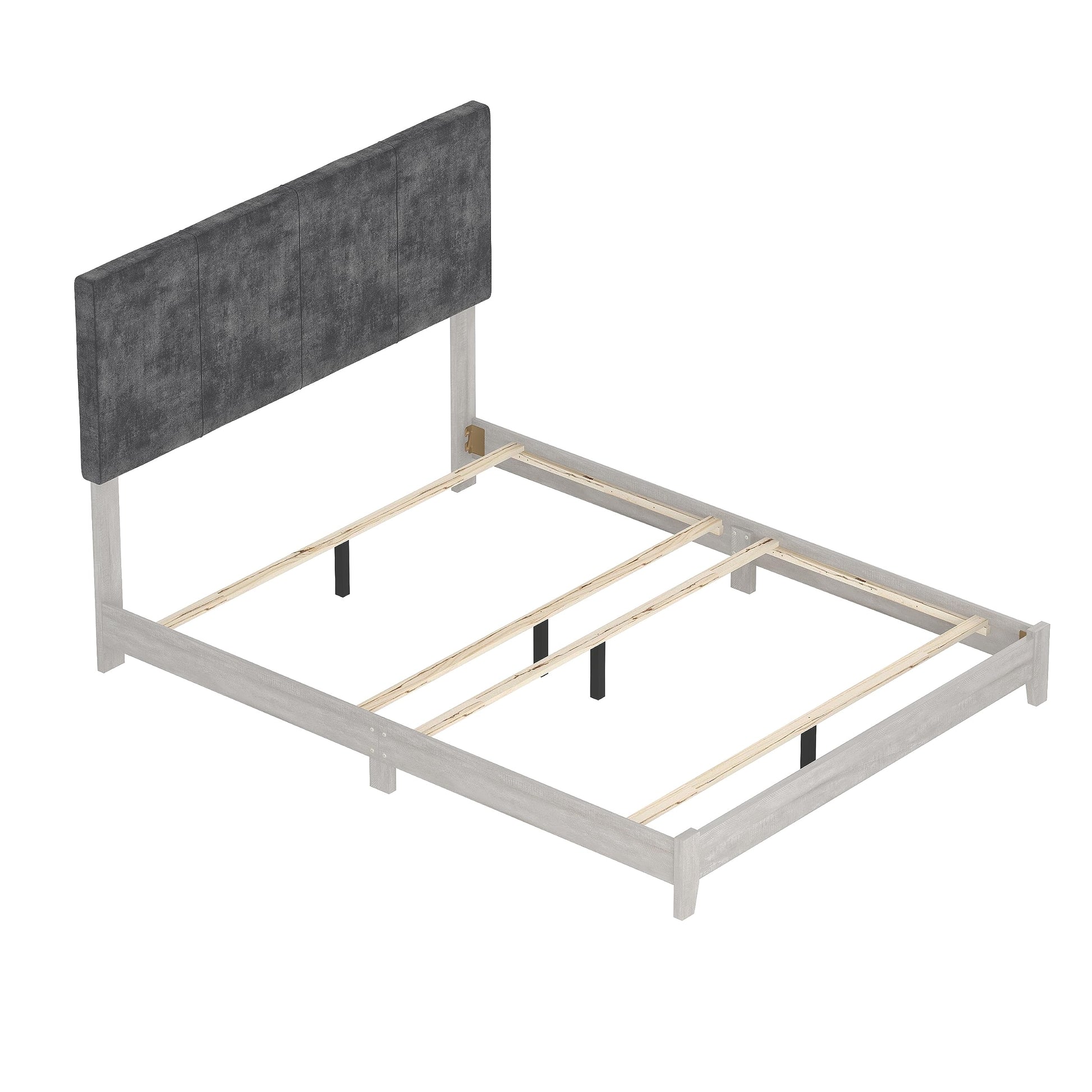Wood Queen Bed Frame with Velvet Headboard, Wood Slat Support