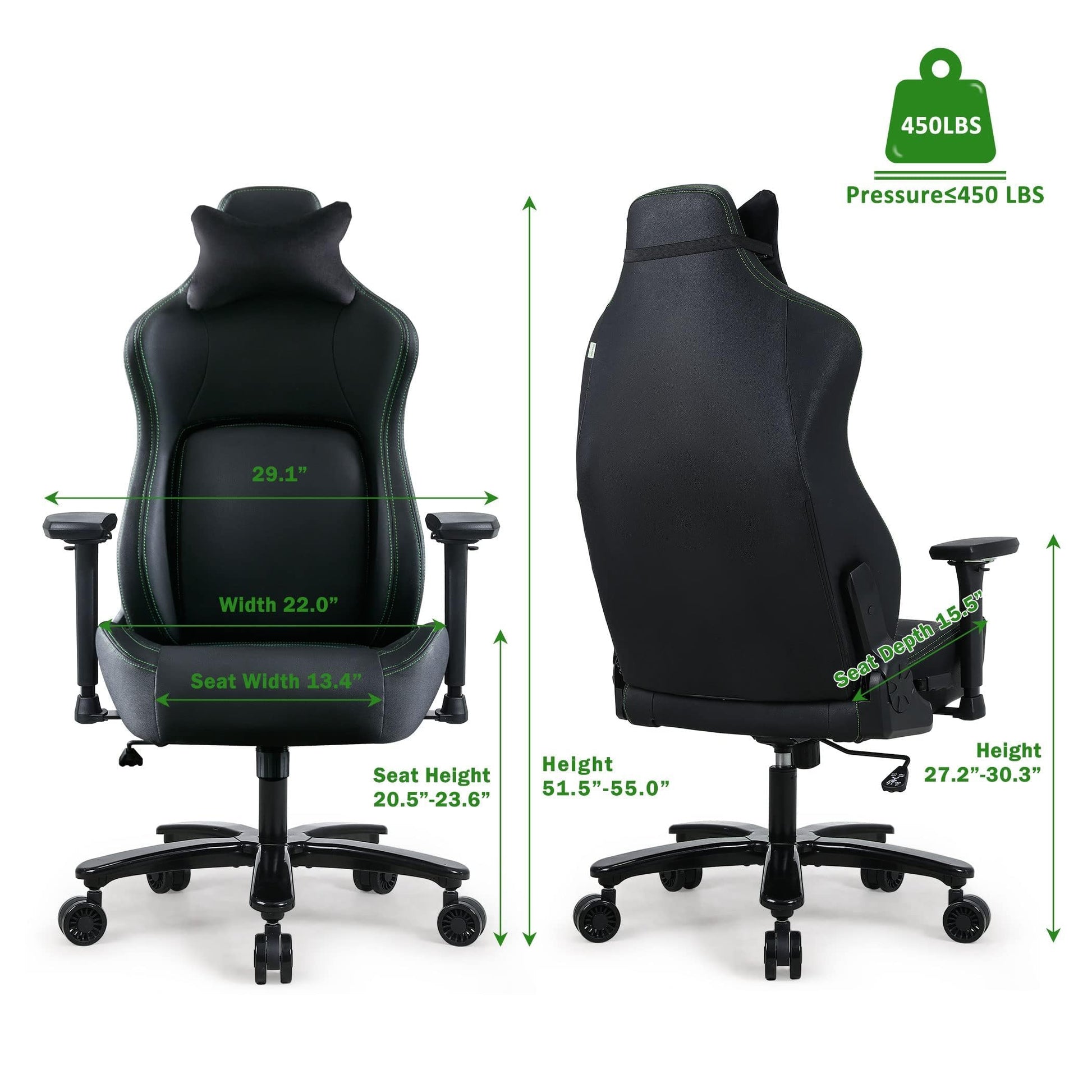 - EXCELLENT COMPUTER CHAIR: This big & tall gaming chair adopts a widen seat and back which is perfect for adults. Perfect dimension: Back: 33 inch. Seat: 21.2 inch. Seat adjustable height: 3.9 inch. The ergonomic body-hugging high back provides lumbar support naturally fits your shoulders, head and neck. Providing the perfect dimension for your life