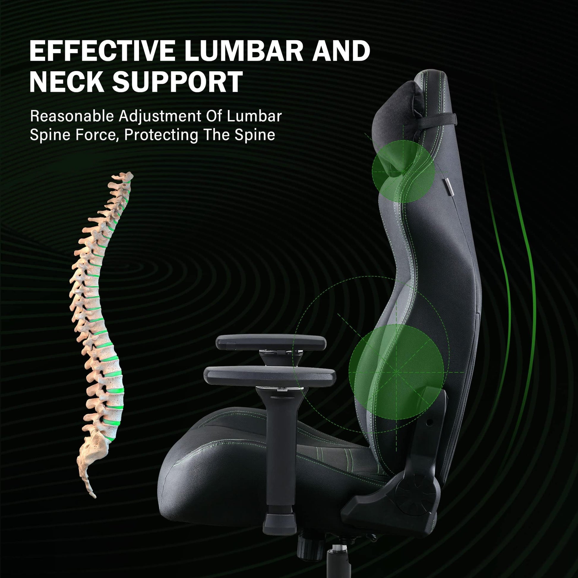 - COMFORTABLE GAMER CHAIR: The desk chair adopts ergonomic design and equips lumbar & headrest cushions. This headrest from the soft chair can relieve your fatigue of your neck. Reduce your pressure and pain and provide you a enjoyable gaming or working sessions