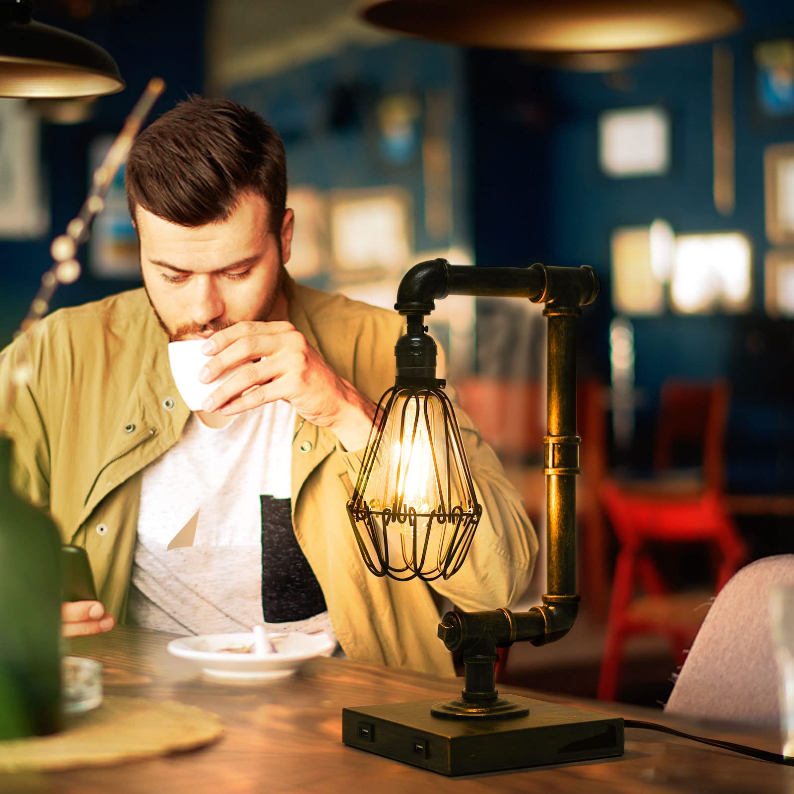 - Water Piping Vintage Style & Perfect Gifts The appearance design of the industrial table lamp is square base, vertical water pipe, connected with bird wire cage shade, creating an air of 19th century nostalgia. The style is eye-catching and highly decorative. It could add a touch of colour in your study room, living room, bedroom, office, aslo perfect gift for housewarming, Christmas, graduation, festivals!