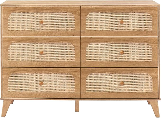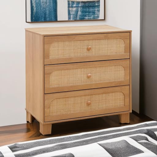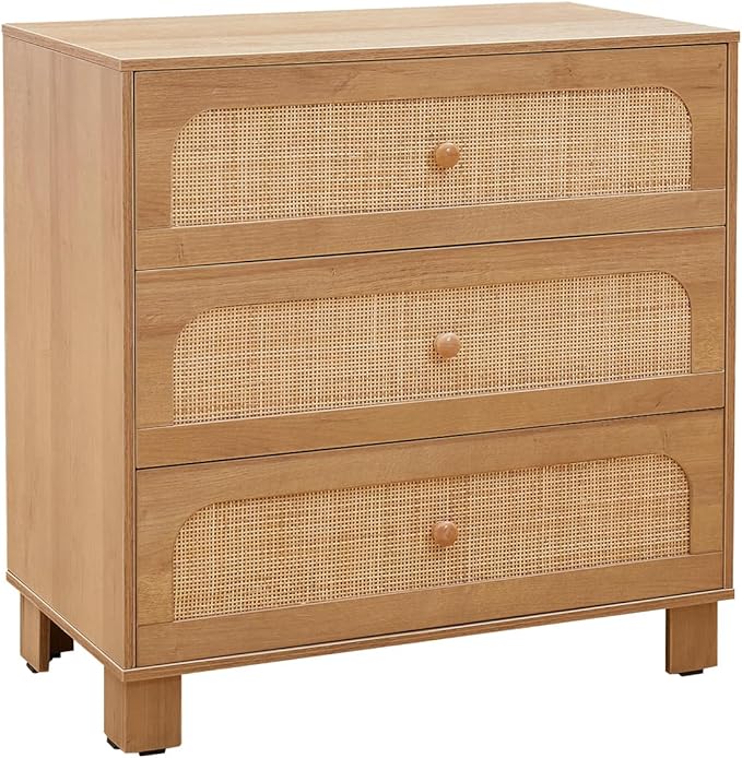 3 Drawer Dresser,Rattan Dresser for Bedroom, Mid-Century Modern Nightstands