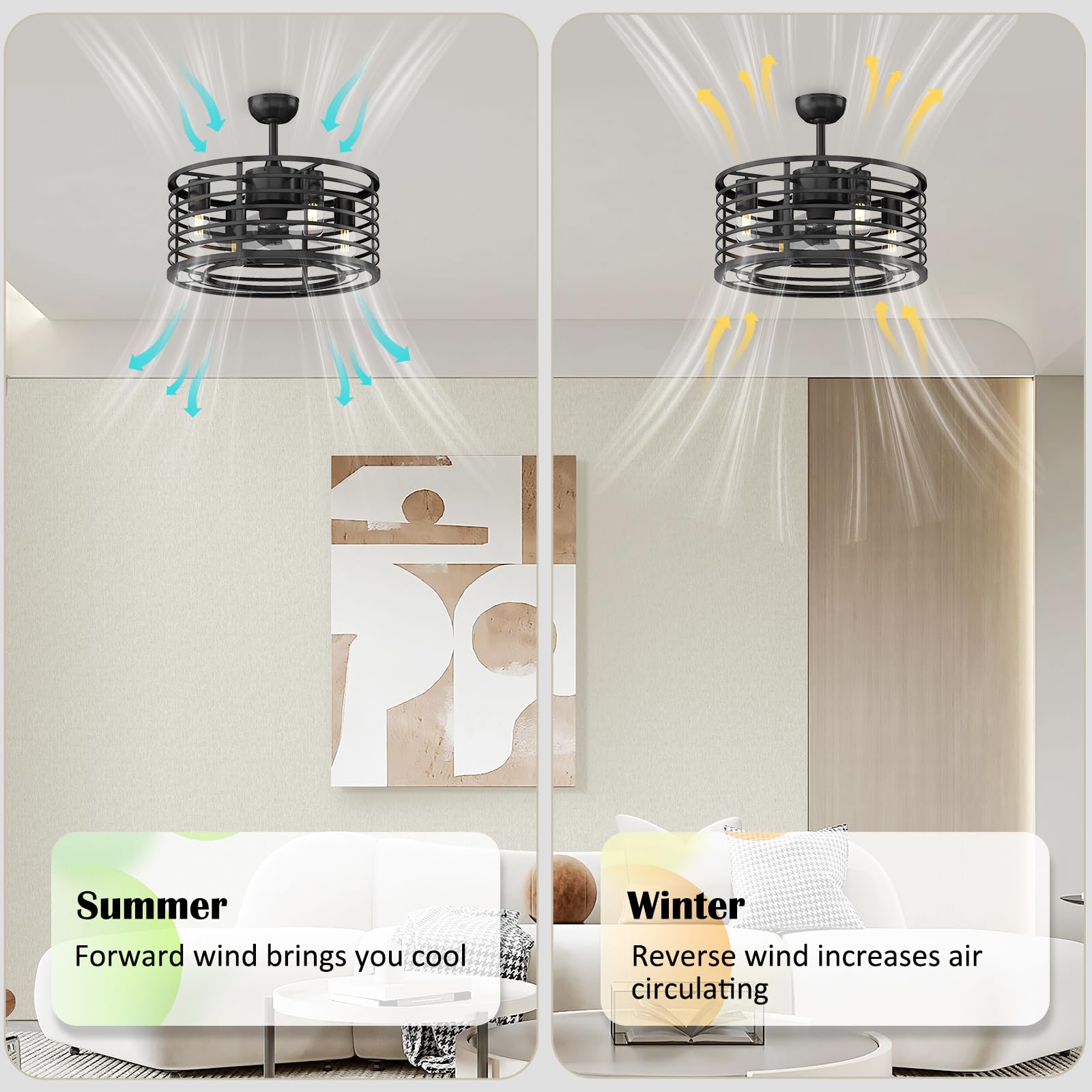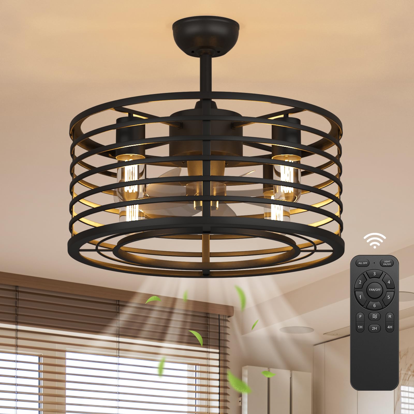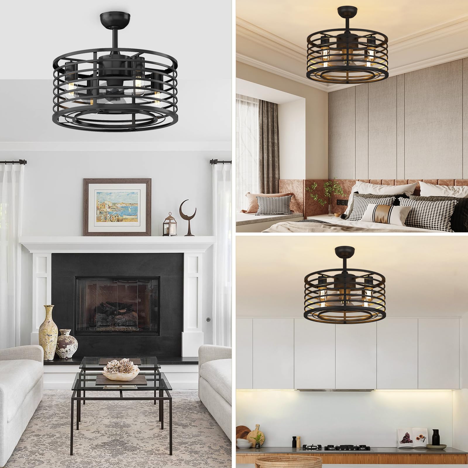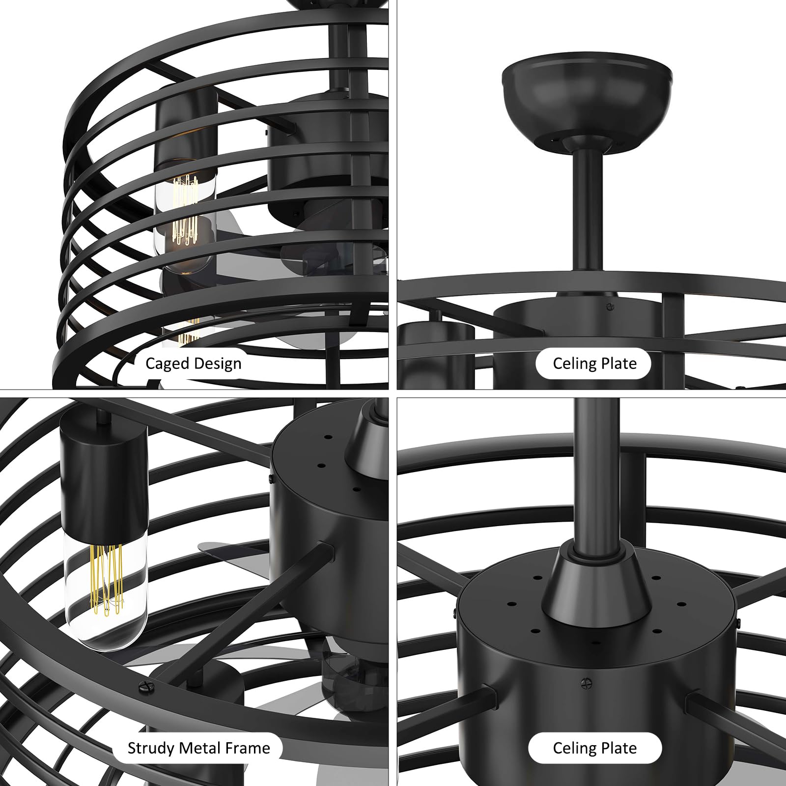 - Stylish & Compact Experience the perfect blend of functionality and style with the 18in black caged ceiling fan, ideal for enhancing your kitchen, farmhouse, or bedroom decor.
