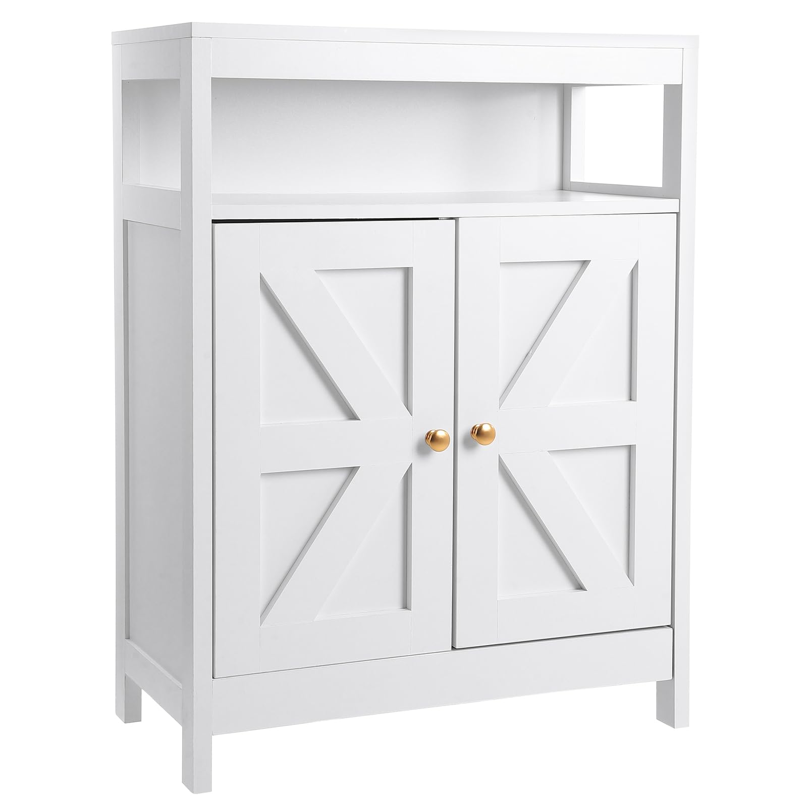 Bathroom Floor Cabinet Wooden Storage Organizer with 2 Doors