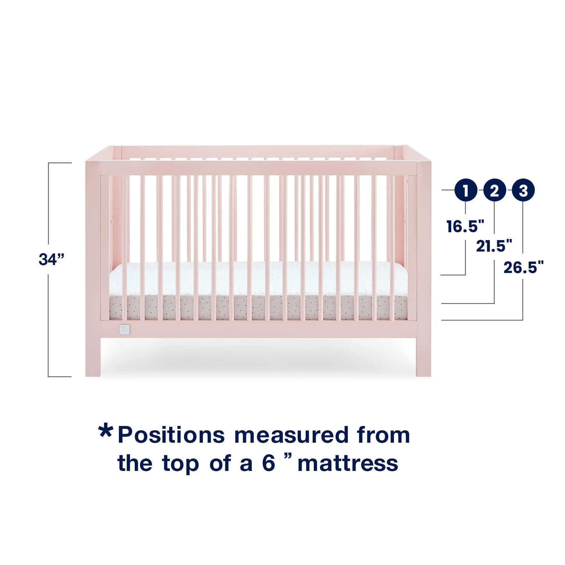 - ADJUSTABLE HEIGHT: Adjustable height mattress support with 3 convenient positions to grow with your baby | ACCESS RAIL DIMENSIONS: From Floor: 34"; From Top Mattress Support Position: 16.50"; From Bottom Mattress Support Position: 26.50"
