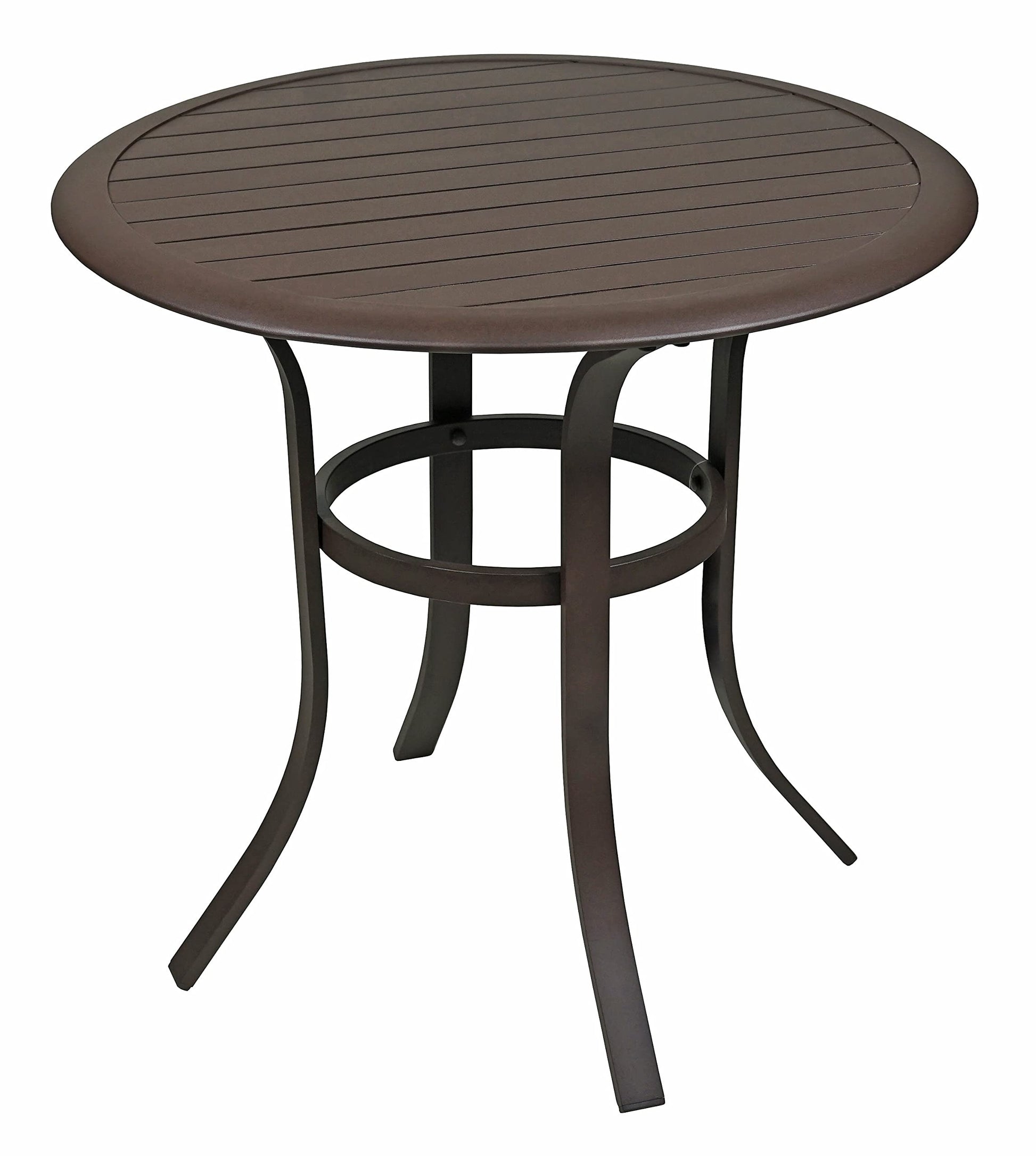 - Stylish aluminum slat top bistro table with an elegant espresso finish