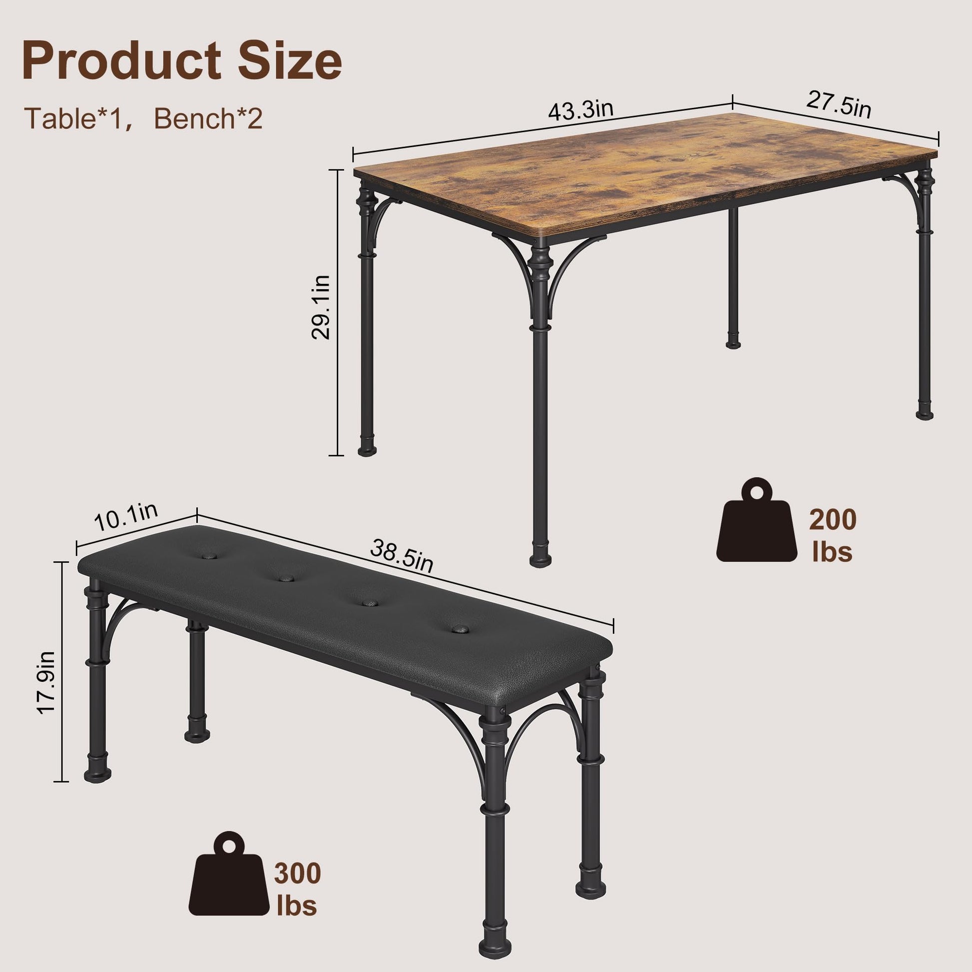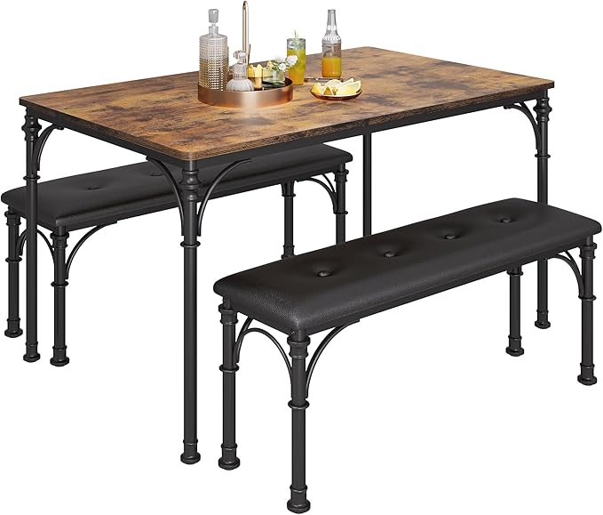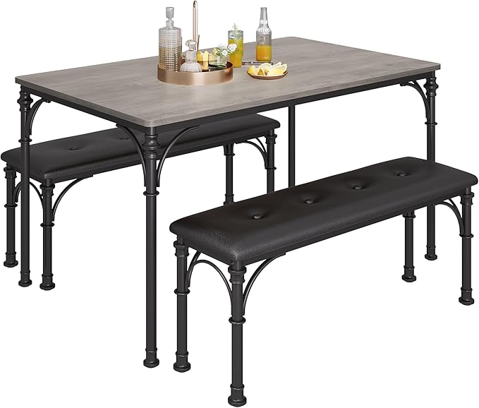 - Space-Saving Design: The dining set comprises a table (43.727.530.7 inches) and two benches (40.5511.8117.72 inches) that conveniently tuck underneath the table to maximize space utilization. Ideal for small apartments, kitchens, studios, and more.