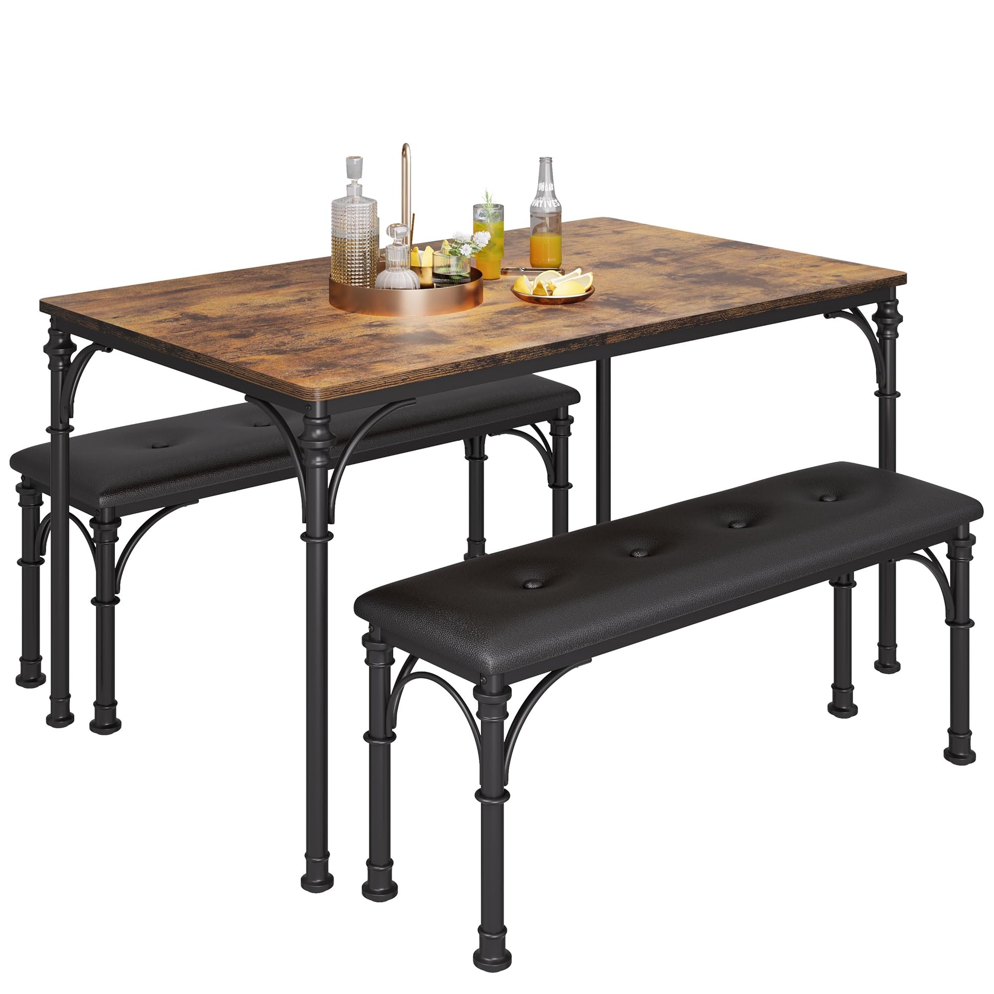- Sturdy and Long-Lasting: Constructed from durable MDF and steel bars, the 4-person dining table set is designed for longevity and stability. The sturdy metal frame can support up to 200 lbs. on the table and 550 lbs. on the benches, meeting all your seating and support requirements.