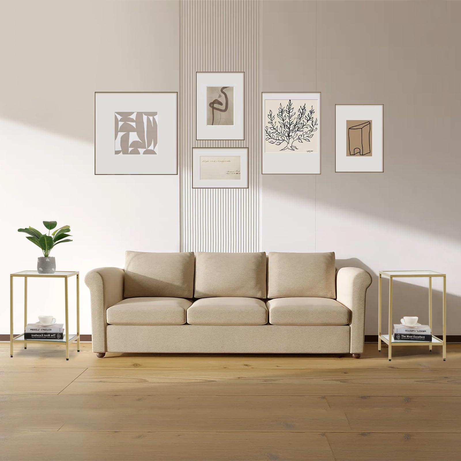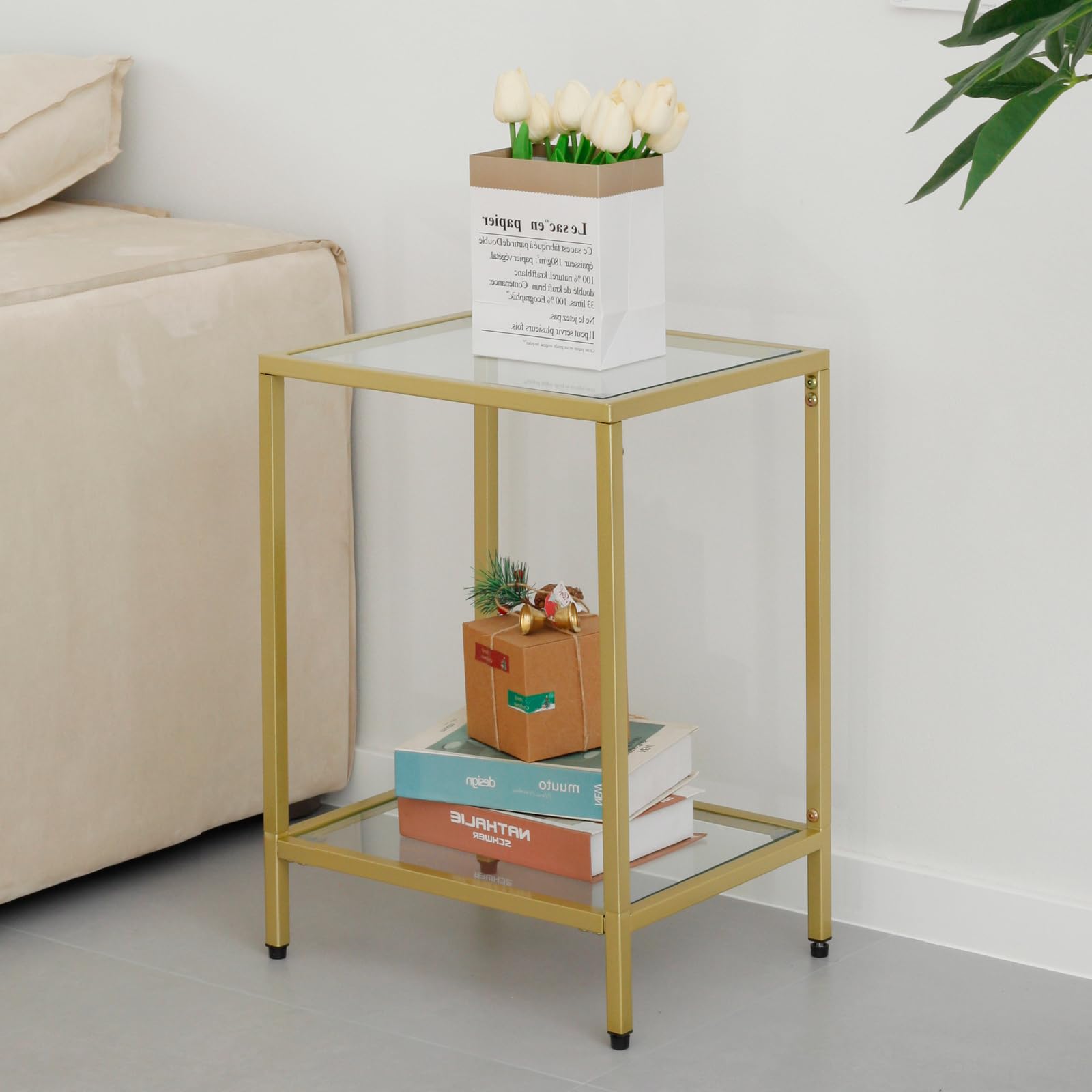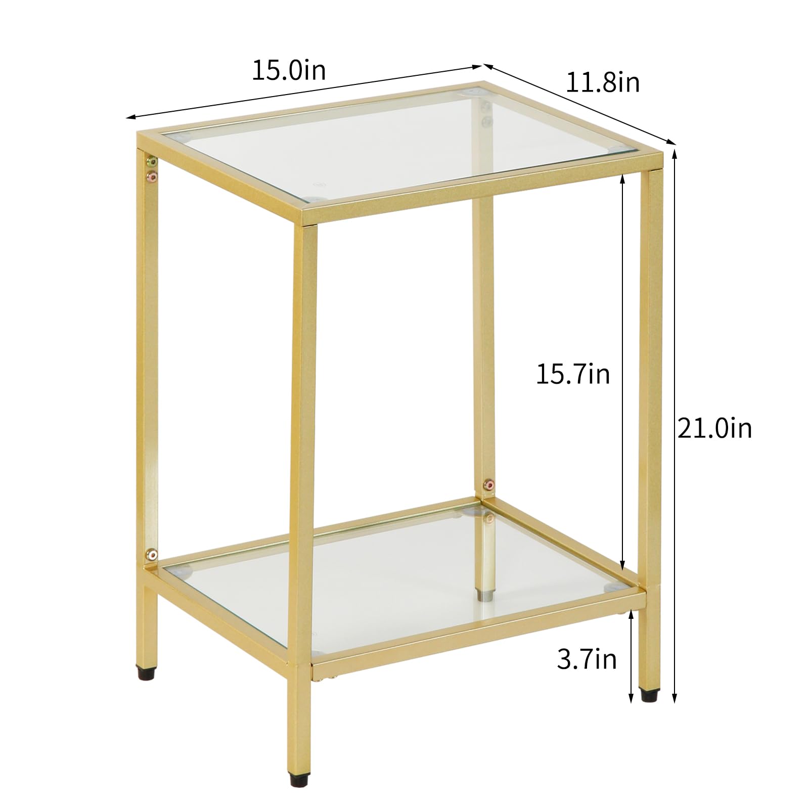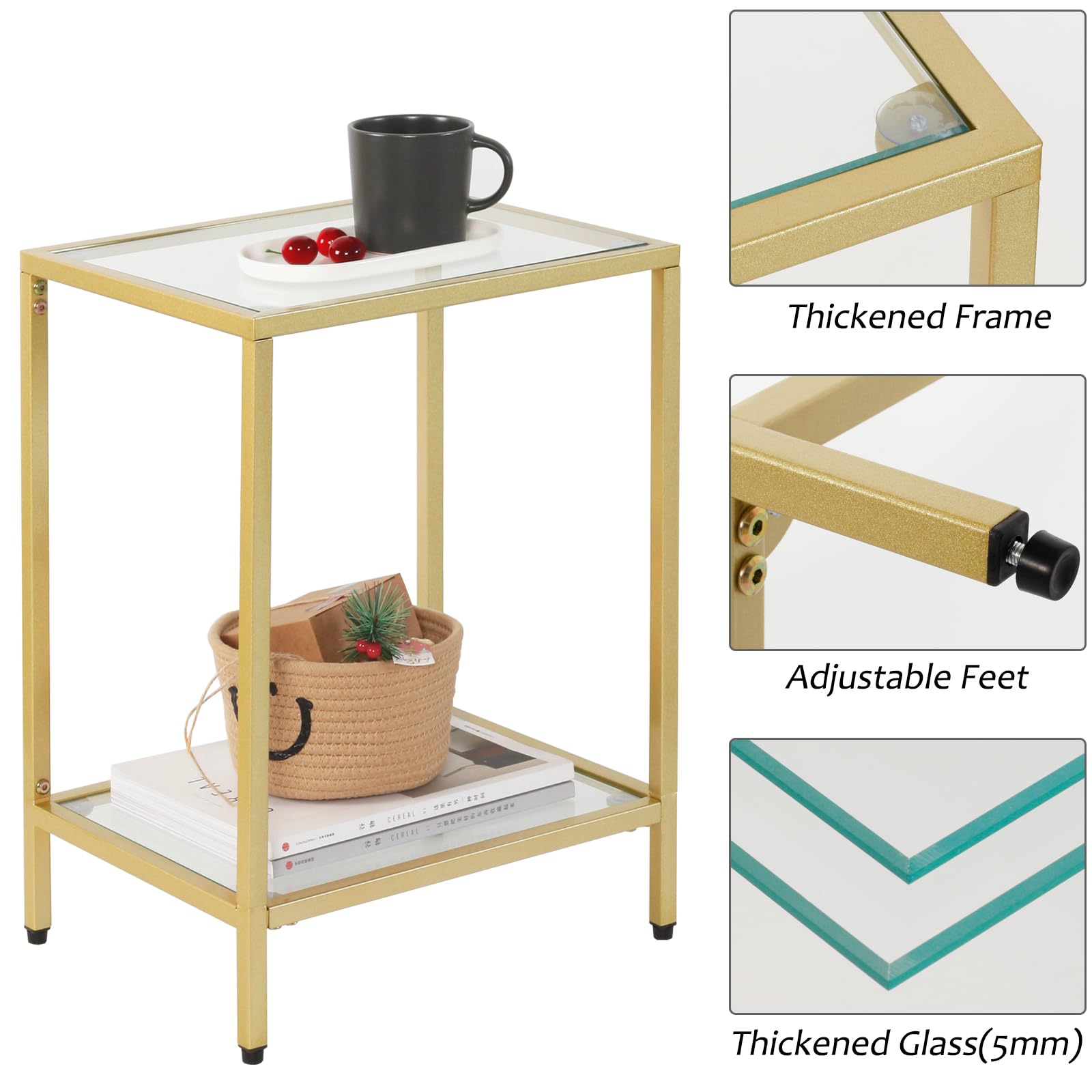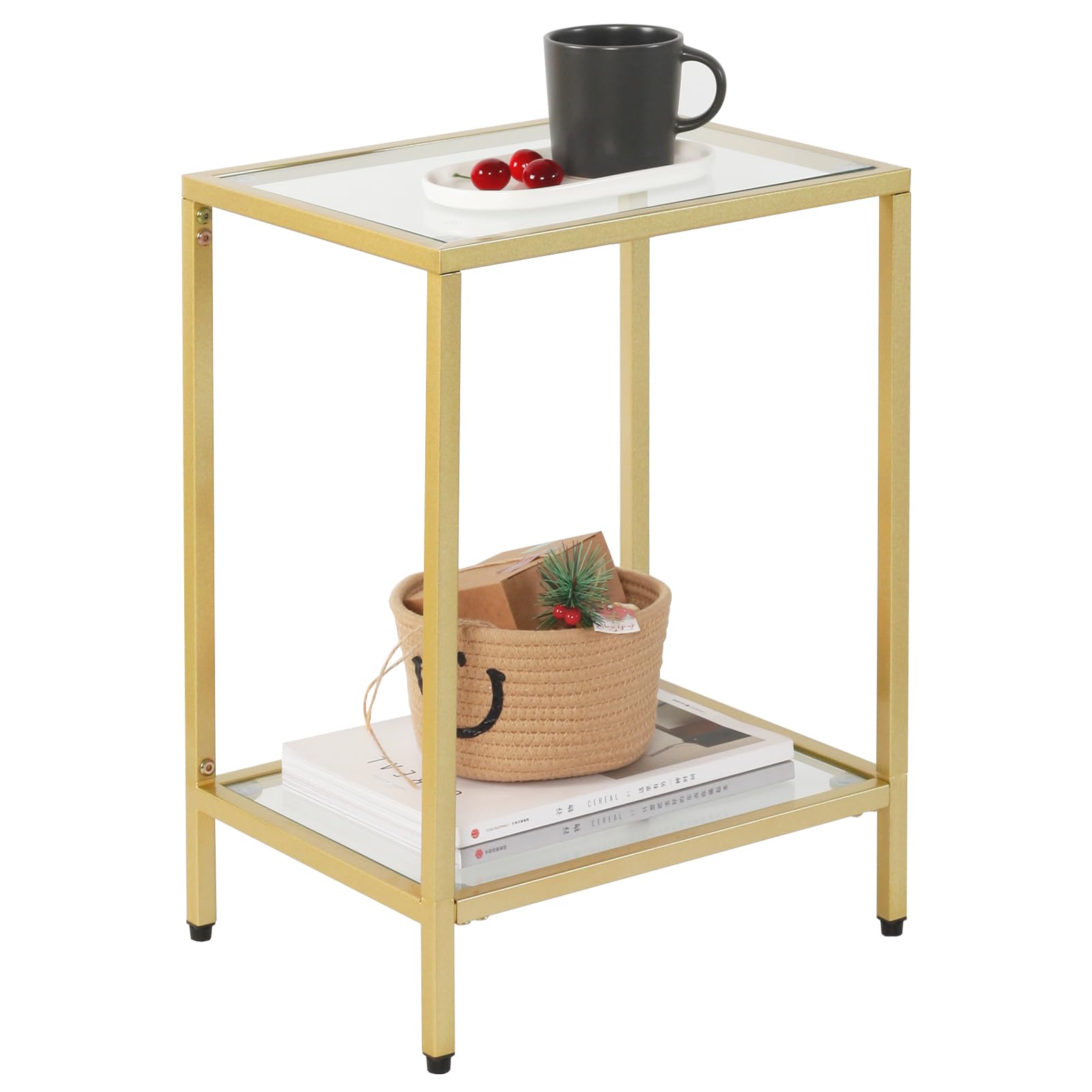 2-Tier End Table with Tempered Glass, Gold Metal Side Tables Sofa Side Table