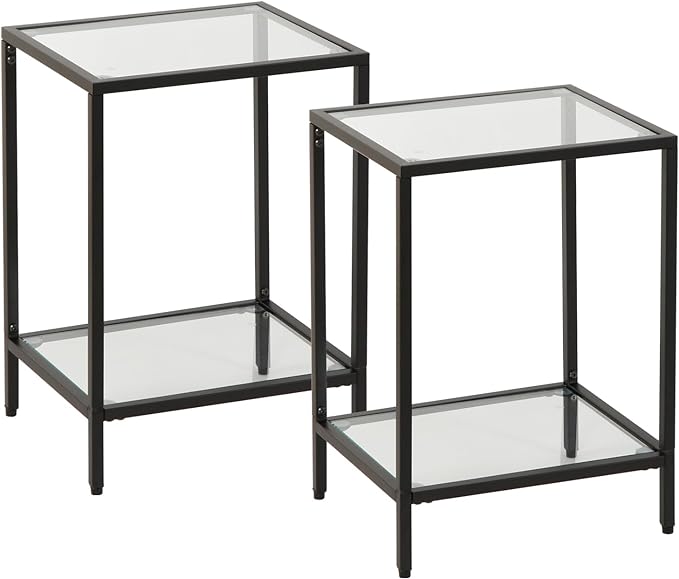 - 2-tier small side table is made of tempered glass and strong metal frame. double layers make less space occupation and give more storage capacity,the additional storage shelf at the bottom is perfect for storing books, crafts, magazines, or tissue boxes, allowing you to easily access them. you can use it both indoors and outdoors.