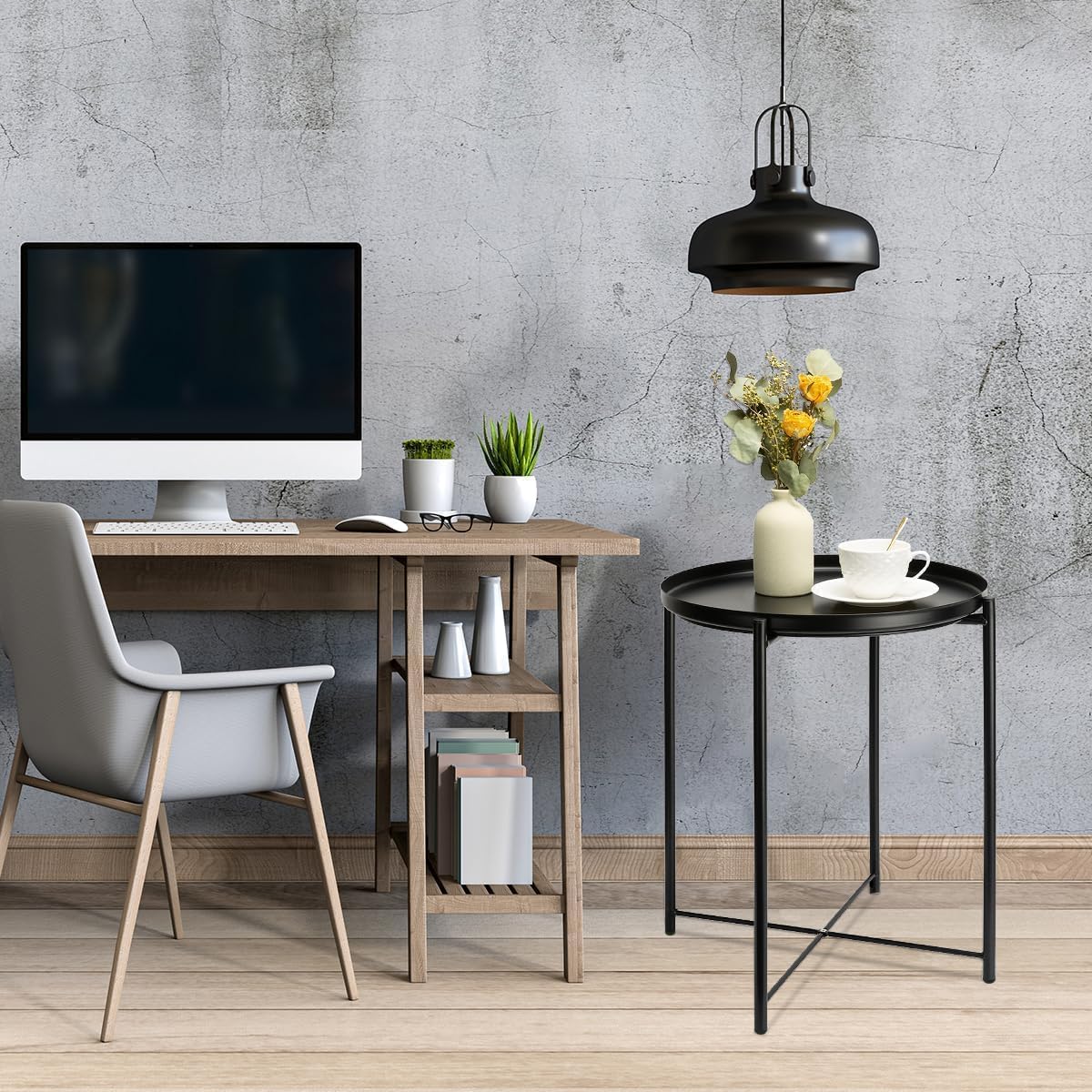 - Perfect in any room! can be used as a Modern sofa side table, coffee table in the living room, nightstand in the bedroom, casual table in the garden or patio, and even an outdoor table or plant stand. REMOVABLE TRAY: This can be used as a serving tray and easily stored with a plug-in structure on both the front and back side. Our round-end table sports a curled edge design to avoid potential accidents when moving around. DURABLE MATERIAL: Our small side table is built with anti-rust, waterproof, sturdy metal and powder coating, Metal is bigger and stronger than others, and can securely hold something that weighs to 40KG.