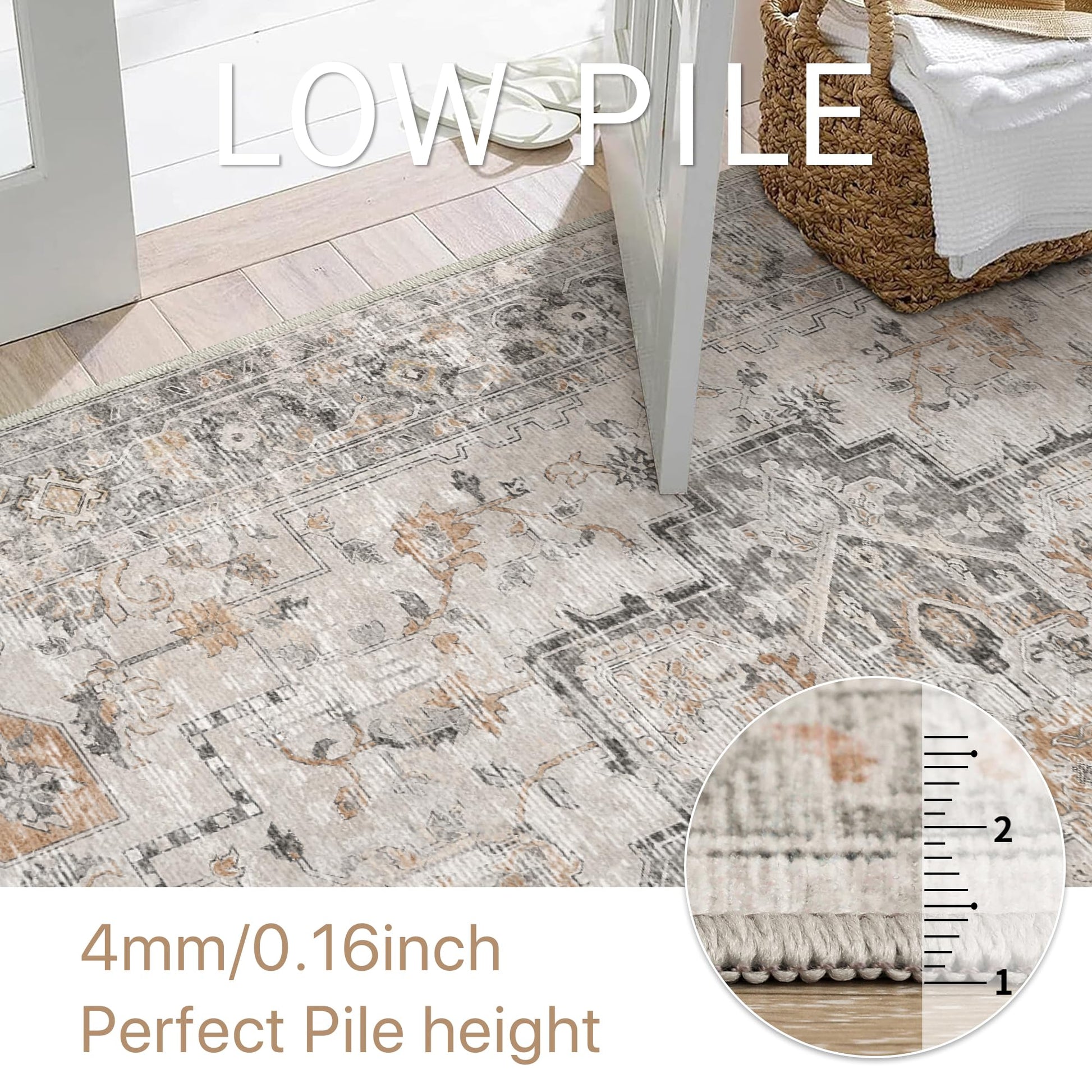 3x5 Area Rugs for Living Room, Machine Washable Non Slip Vintage Retro Rugs, Low Pile