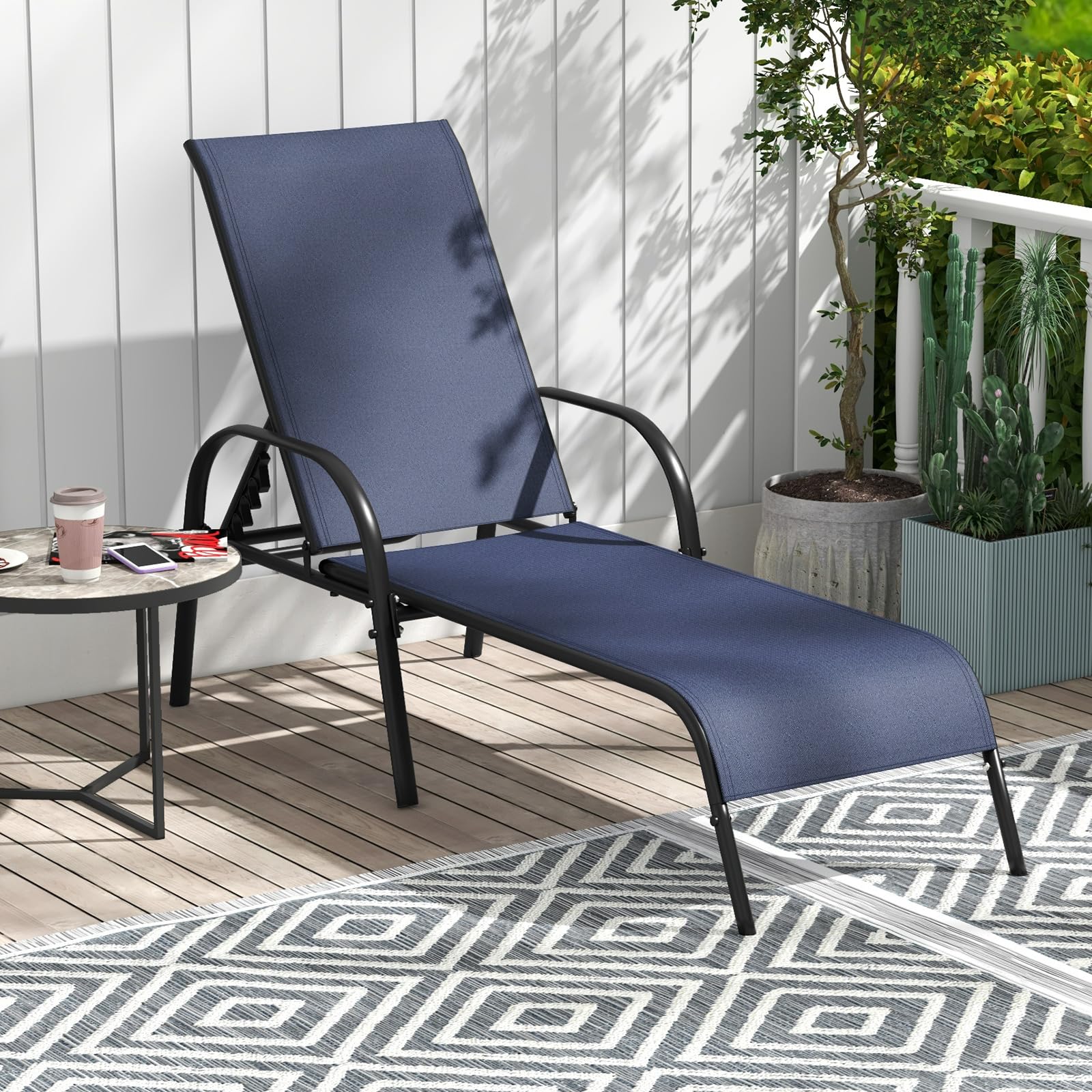 - This patio chaise lounge has a wide backrest, which can be adjusted to 5 different positions according to your preference. Thanks to its flexible adjustment system, it can be easily operated only by adjusting the pole and fixing it. You can switch between sleep mode and leisure mode at will on the comfortable recliner. Please note that we do not recommend lying flat.