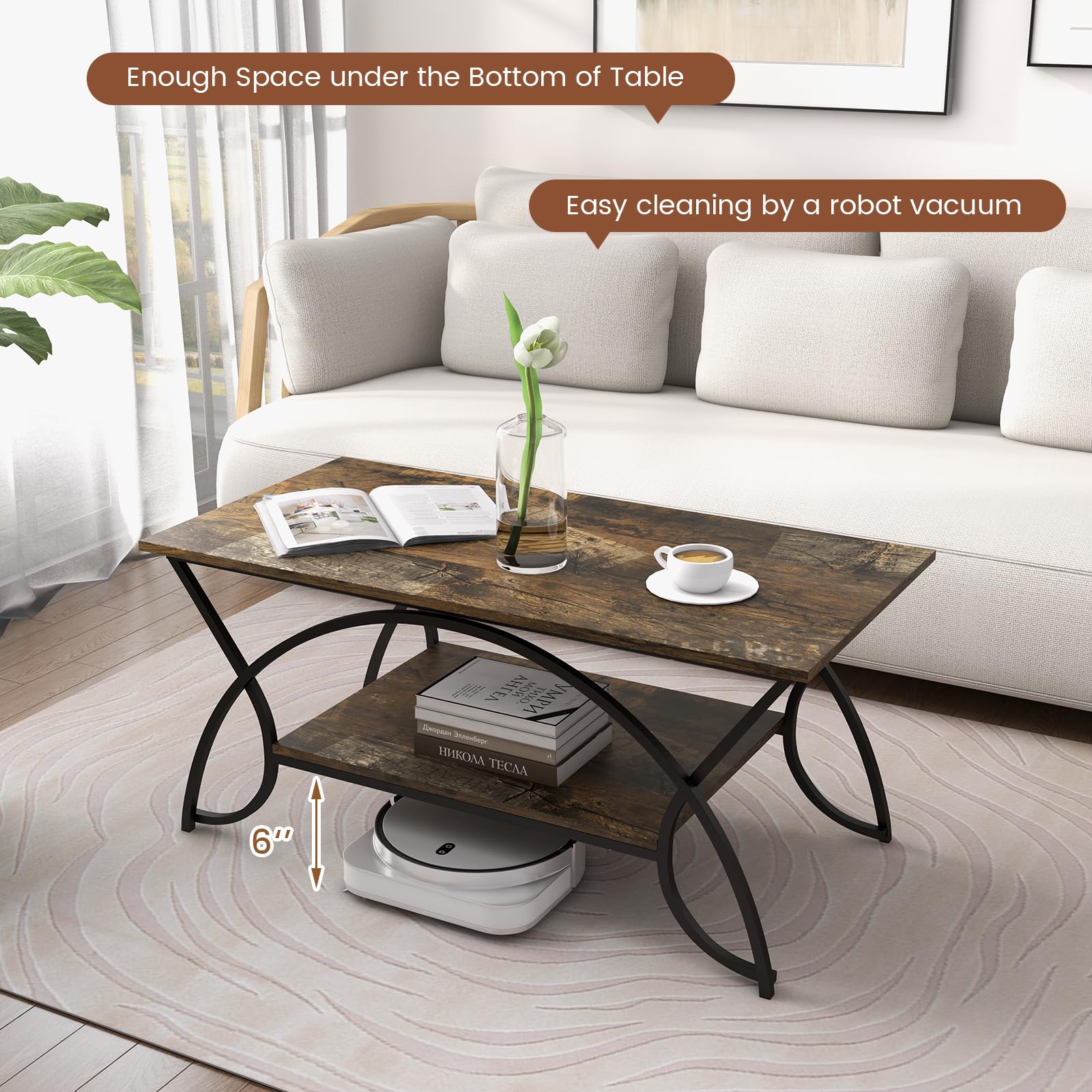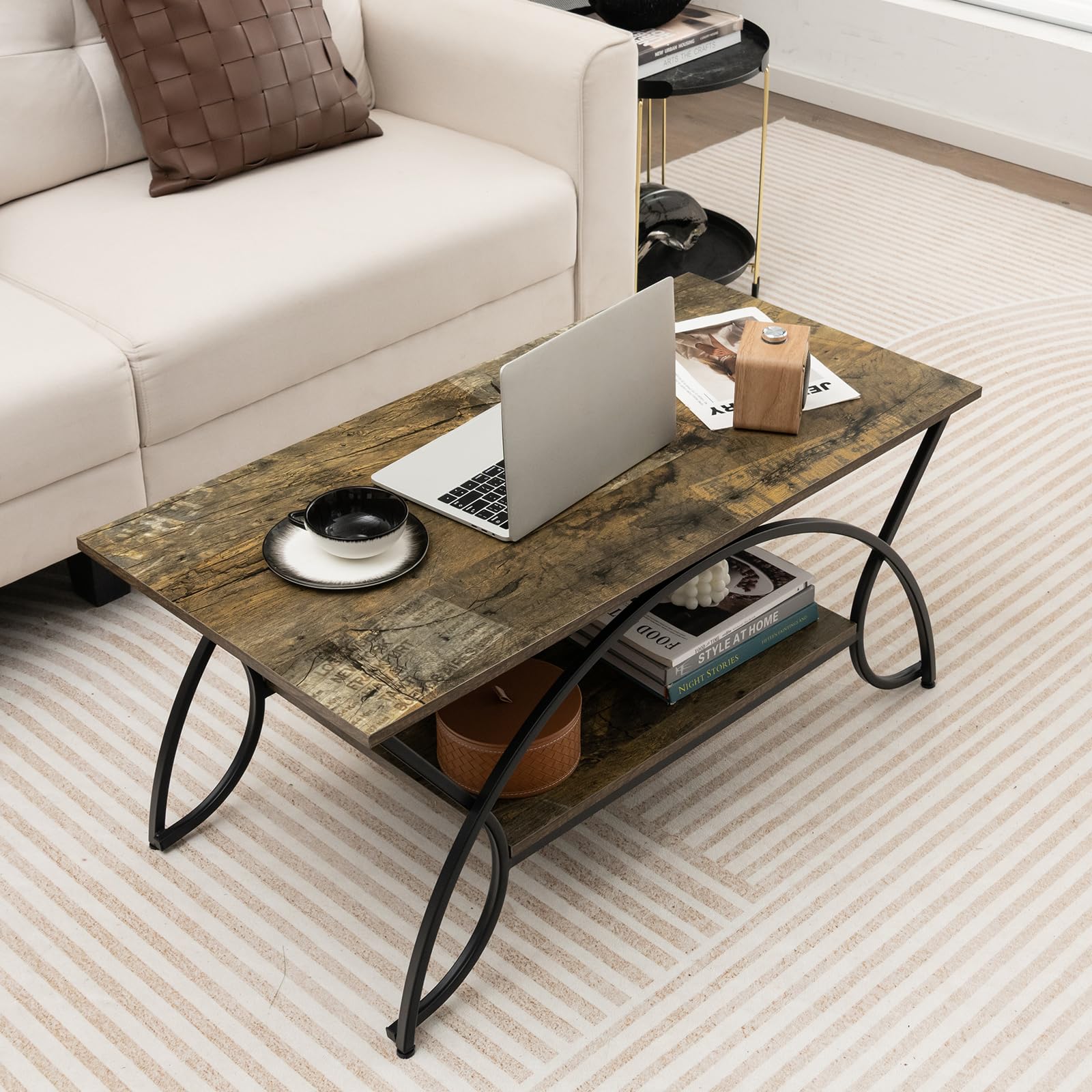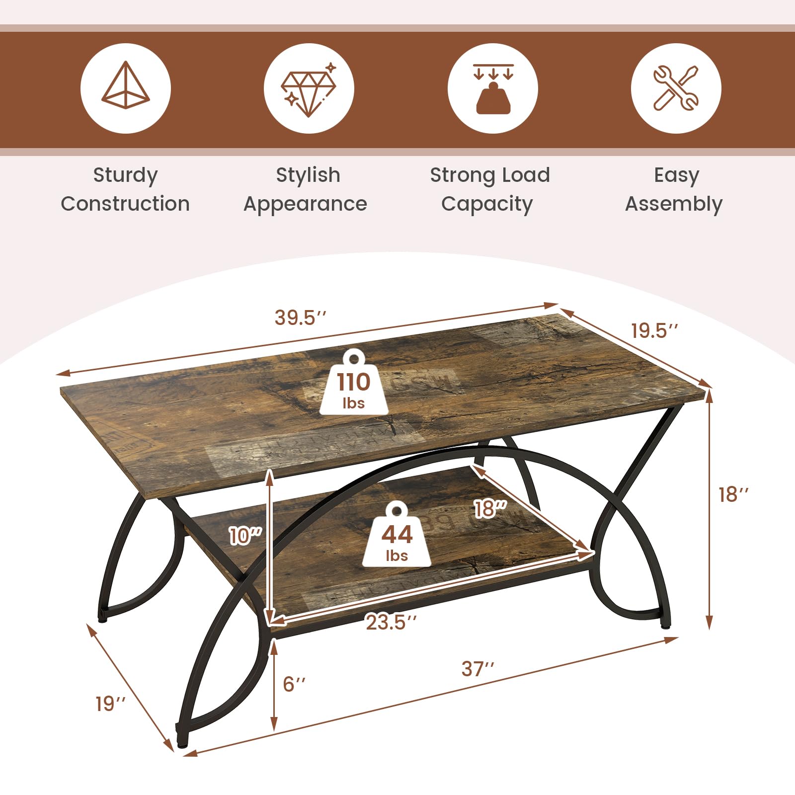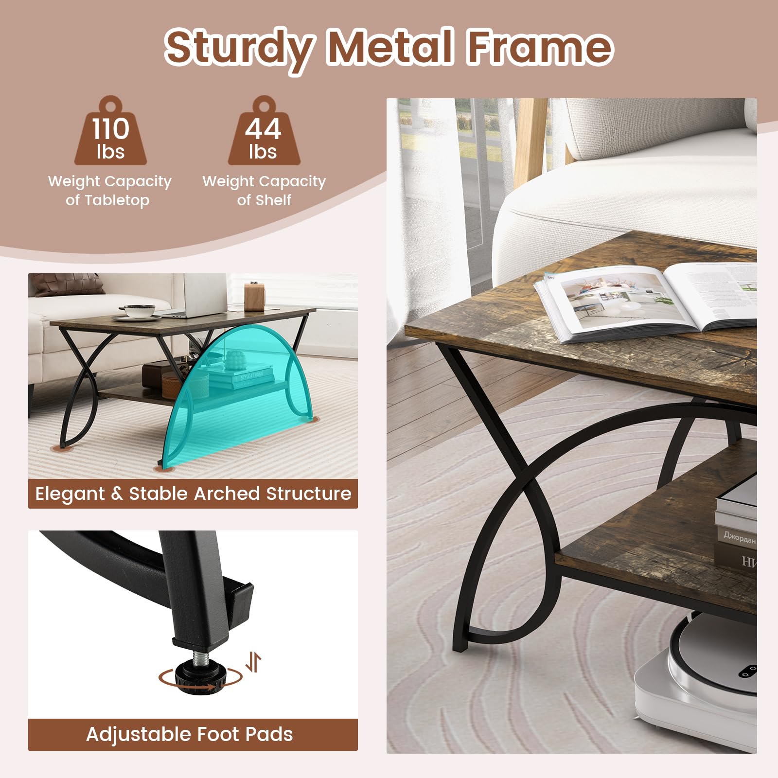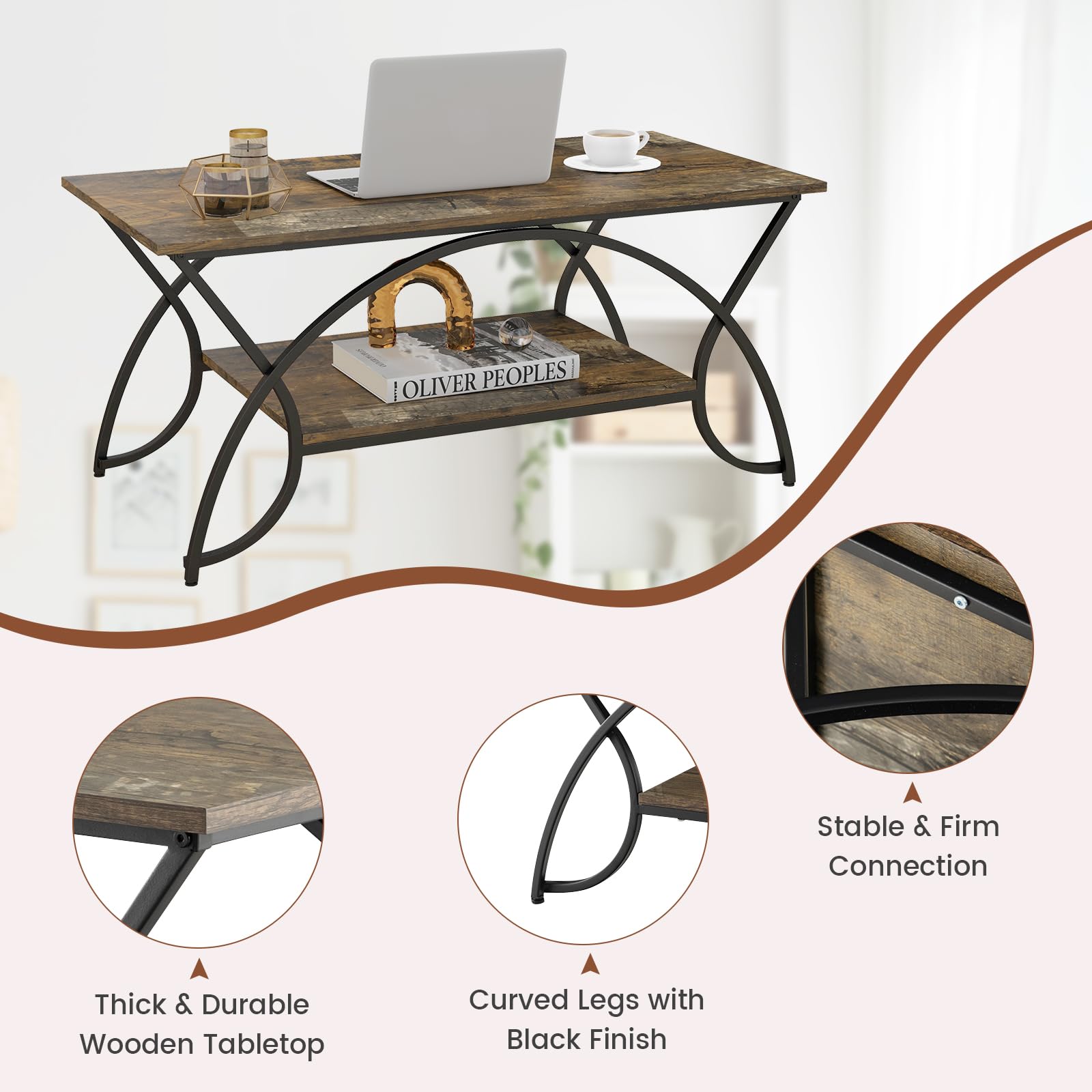 2-Tier Rectangular Coffee Table, Wood Grain Table with Open Storage Shelf