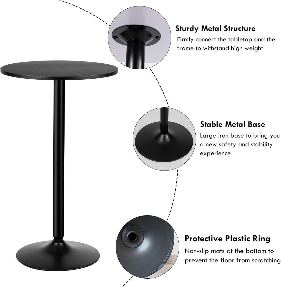 - This heavy-duty table is supported by a strong iron rod and a large base to guarantee a sturdy frame and durable use. Along with a non-slip ring at the bottom, the bar table is added with extra stability to firmly stand on the floor with 265 lbs weight capacity.