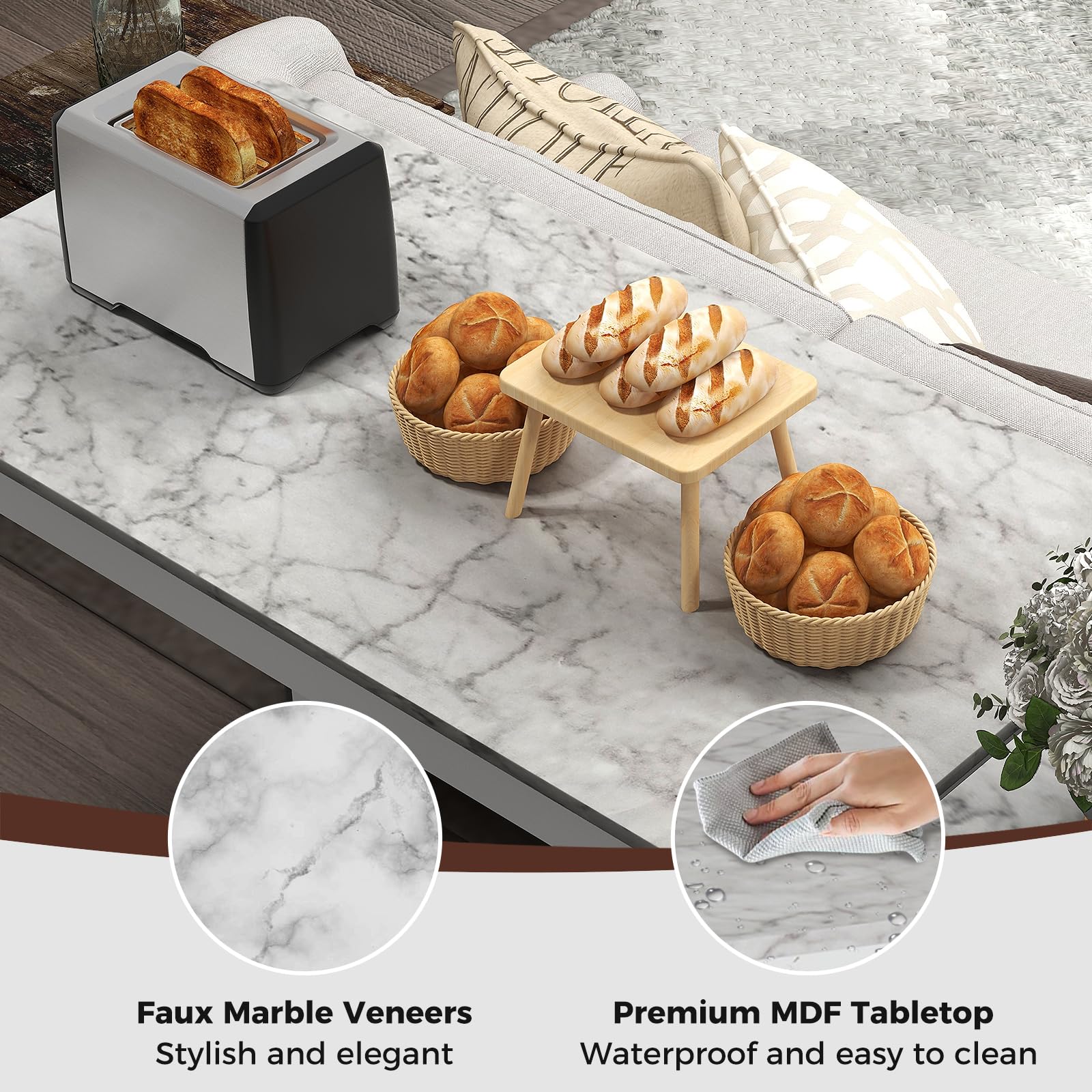 - The dining table features a premium veneered tabletop that is waterproof and easy to clean. Assembly is a breeze with clear illustrations in the user manual, allowing you to set it up effortlessly.