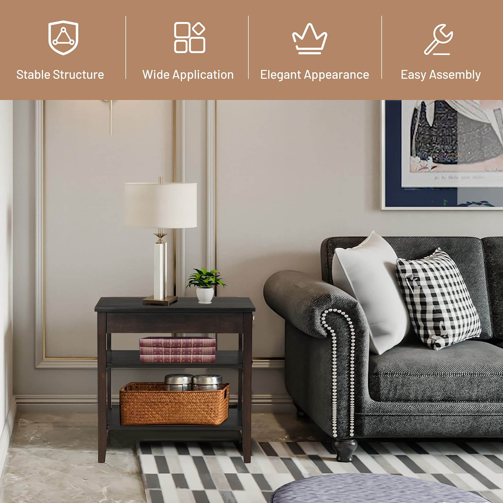 - 2 tier storage shelves of this side table bring much convenience to store items in different categories. The drawer of this end table with knob offers with privacy storage space. And the solid tabletop provides space for laptops or other daily necessities within reach.