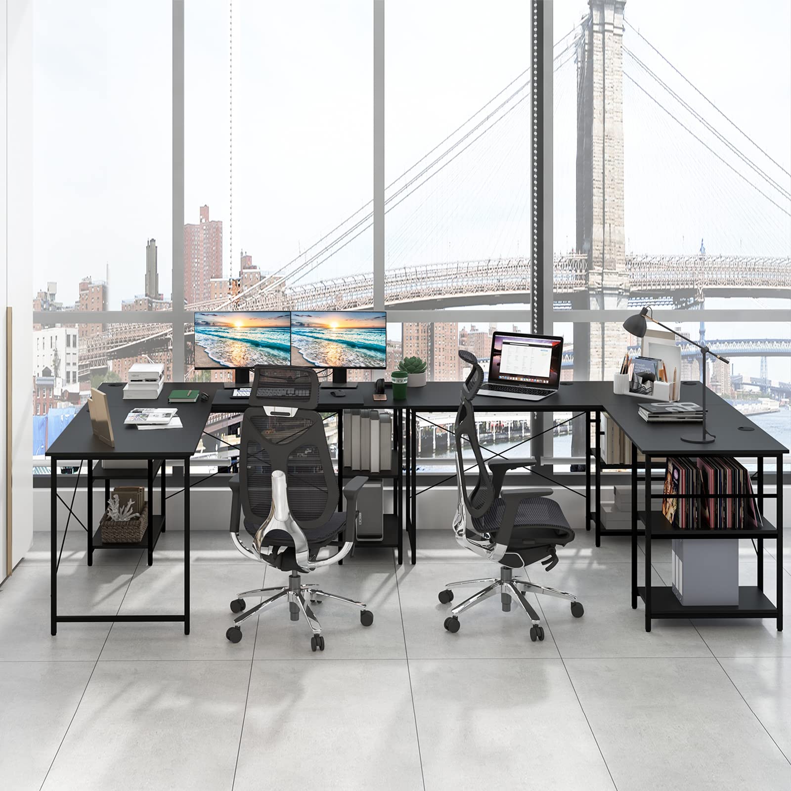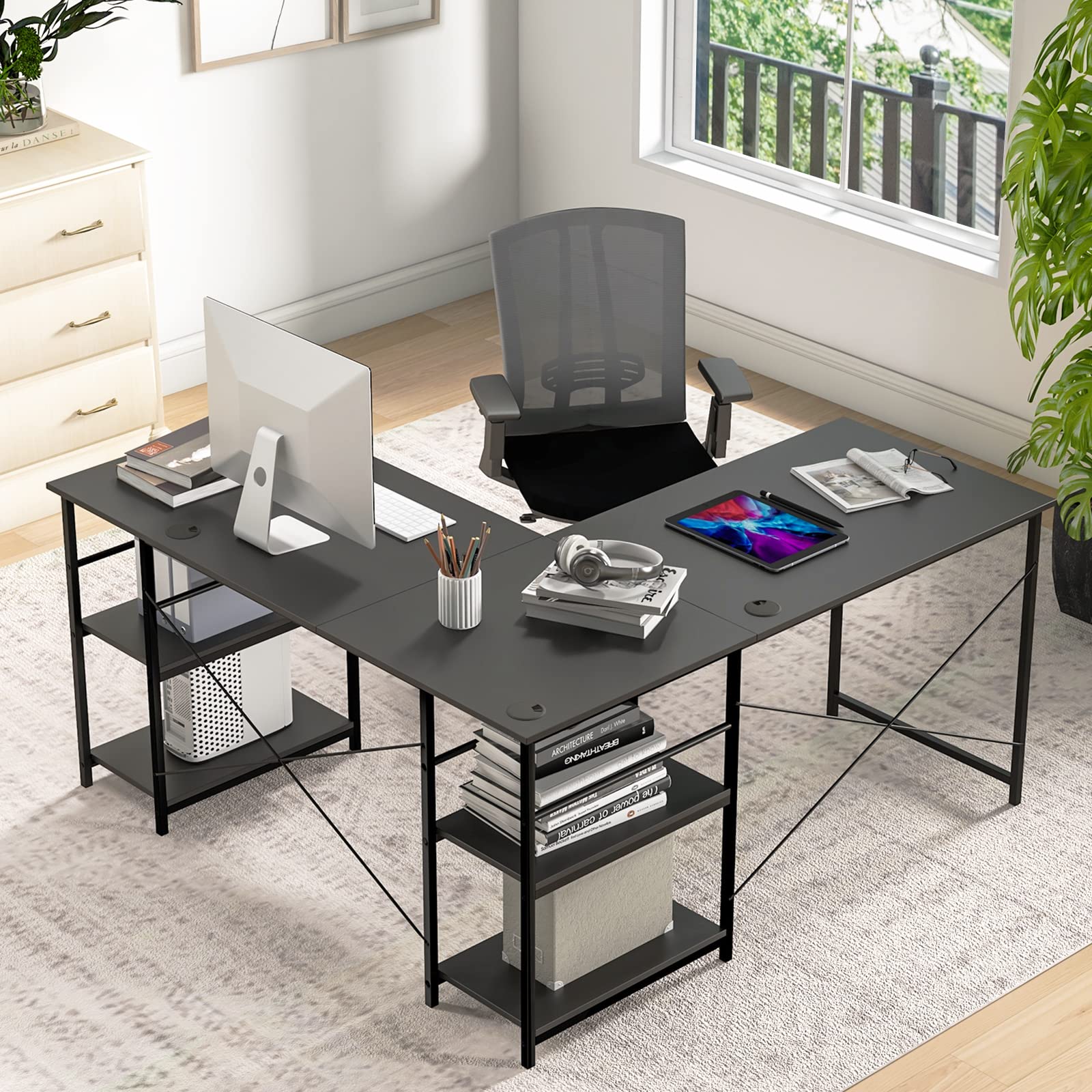 L Shaped Computer Desk, 60" Reversible Corner Desk with 4 Storage Shelves & Cable