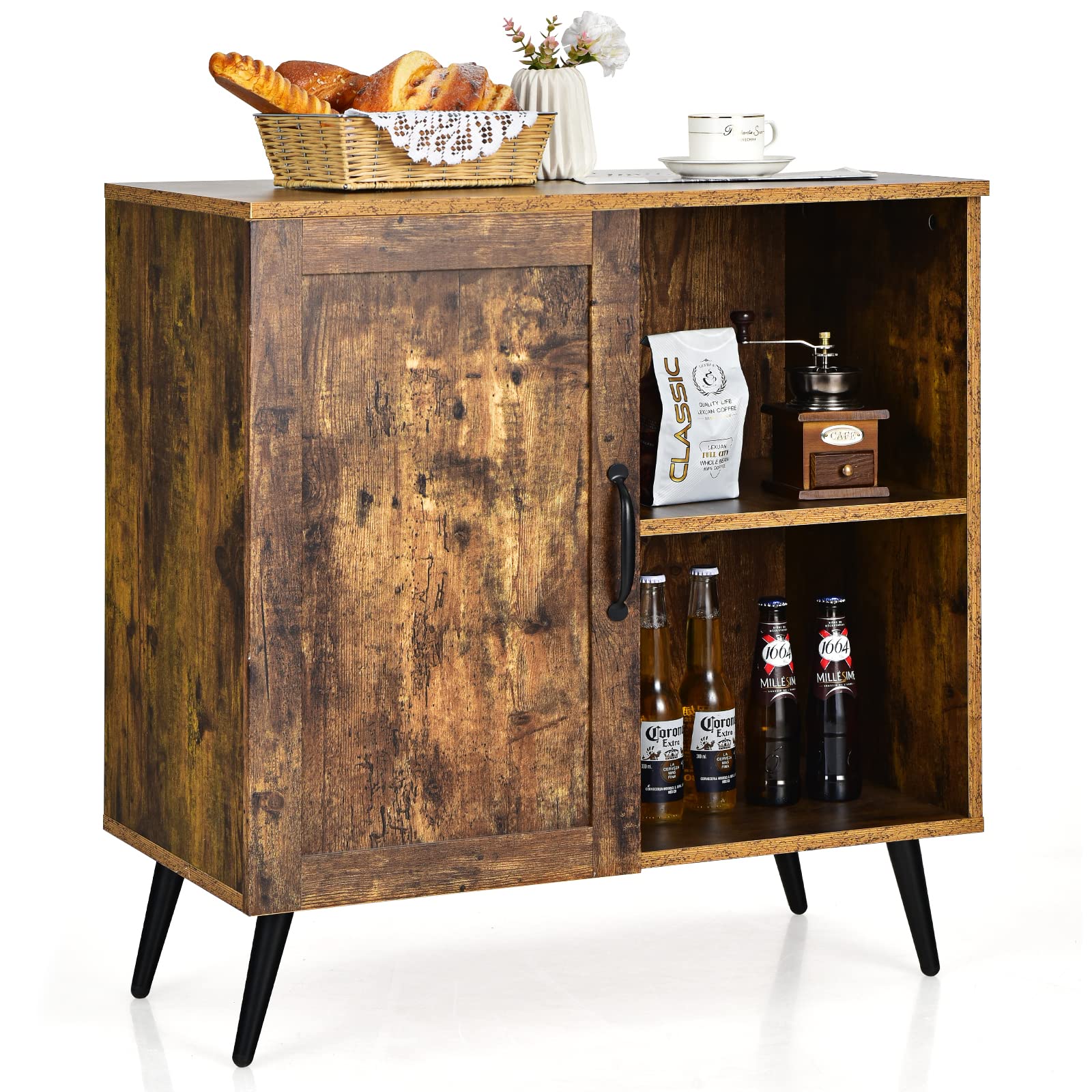 Mid-Century Storage Cabinet, Buffet Sideboard with Single Door & Adjustable Shelves