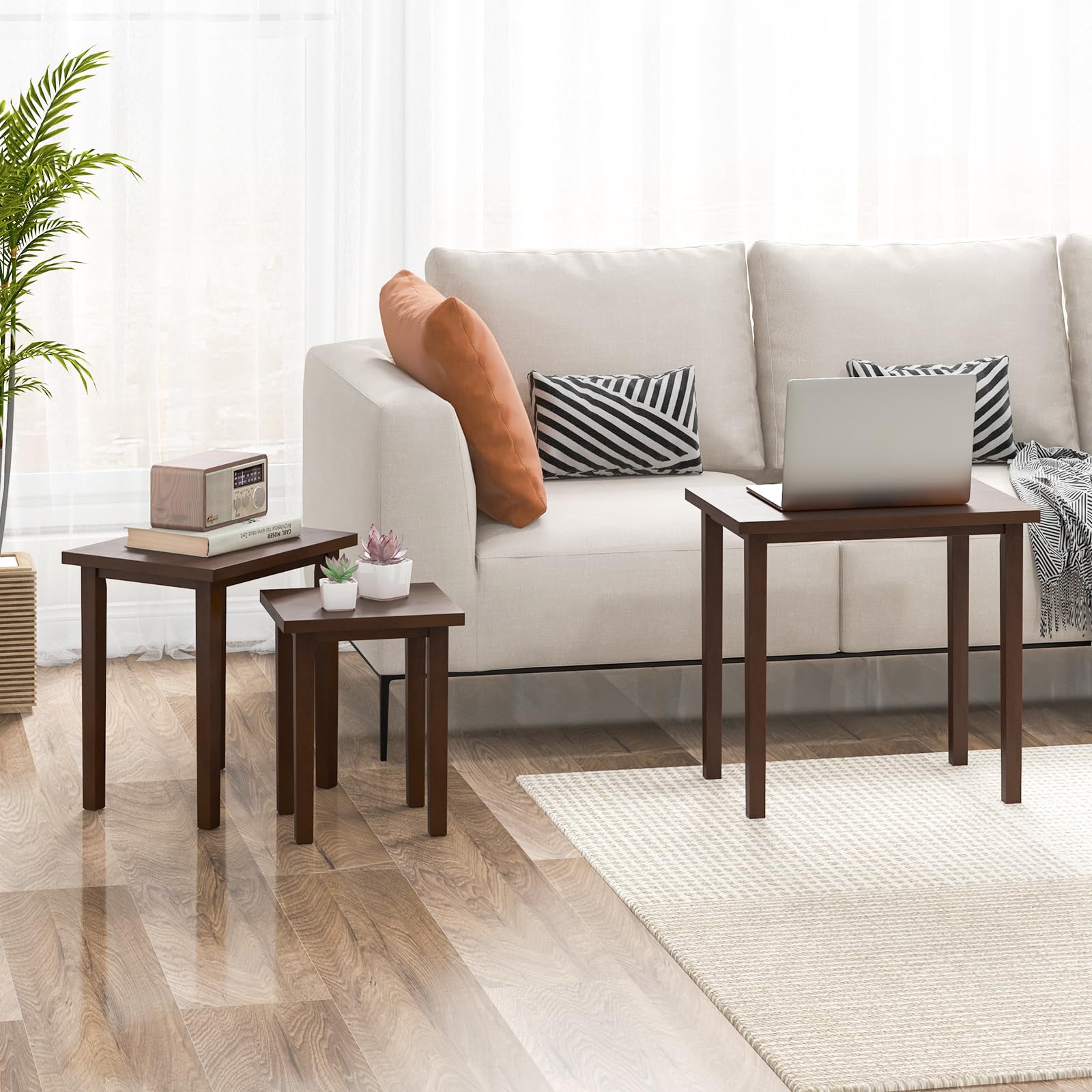 Nesting Tables Set of 3, Farmhouse Stacking Side Tables with Rubber Legs