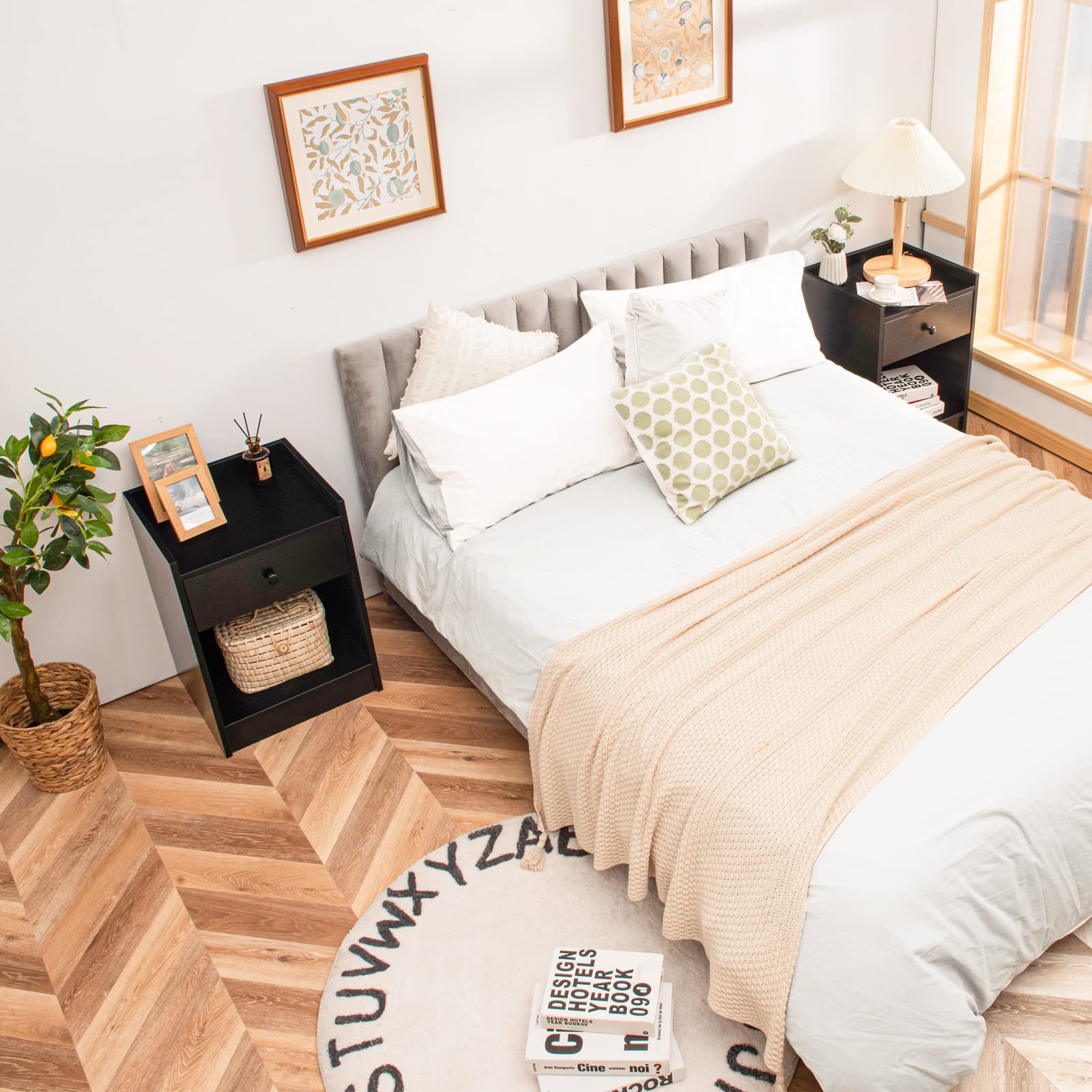 - The drawer of nightstand is fitted with a metal knob and smooth sliding rails. It is easy to open or close the drawer without making annoying noise. What’s more, there are anti-slip pads at the bottom to increase stability and prevent floor scratches.