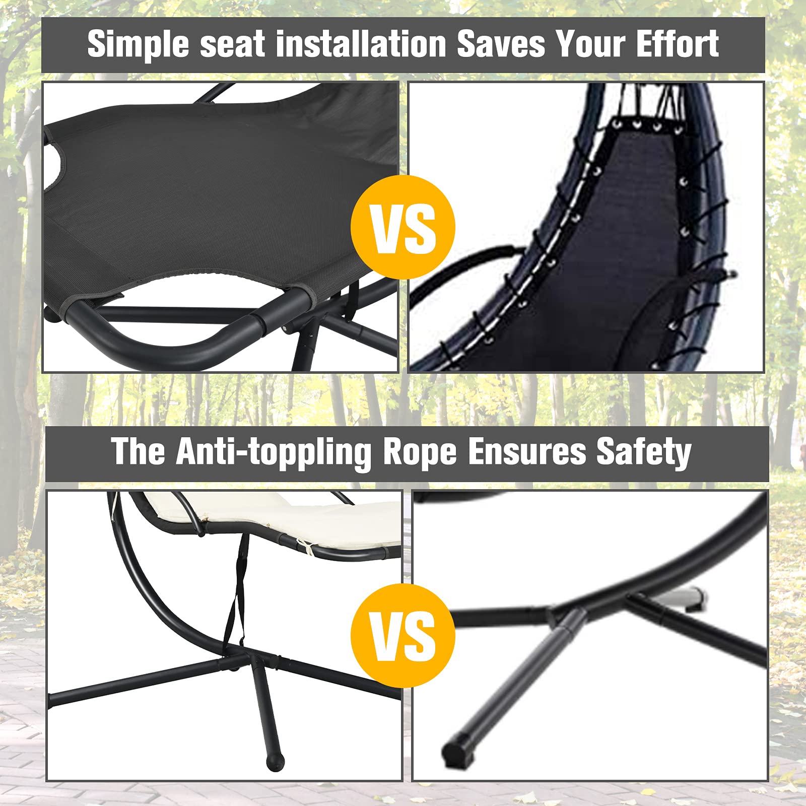 - Premium Material & Sturdy Frame: Made of heavy-duty steel frame, our outdoor hanging chaise lounge chair with a X-shaped base ensures overall stability, which can support up to 265lbs. In addition, the foot mats are designed to prevent the floor from getting scratched.