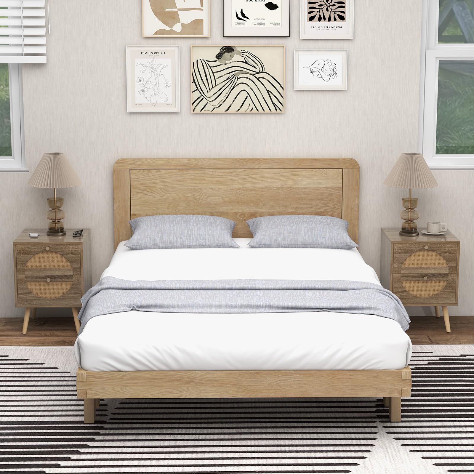 Rattan Nightstand Set of 2, Boho Bedside Tables