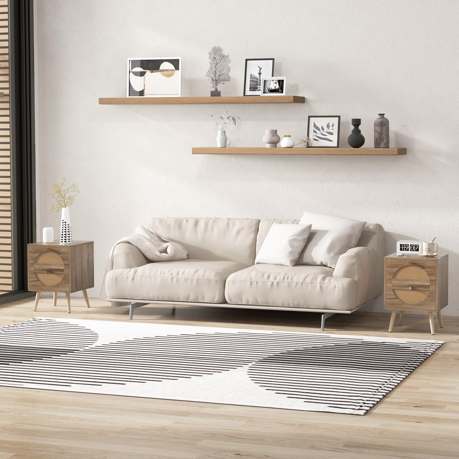 - Premium Material Built: Expertly crafted using high-quality materials, the nightstand boasts a stylish and elegant PVC+PVE rattan design along with solid pine wood legs. The sturdy build provides stability, security, and an anti-fading surface that ensures the lasting beauty of decorative aesthetics in your living space.