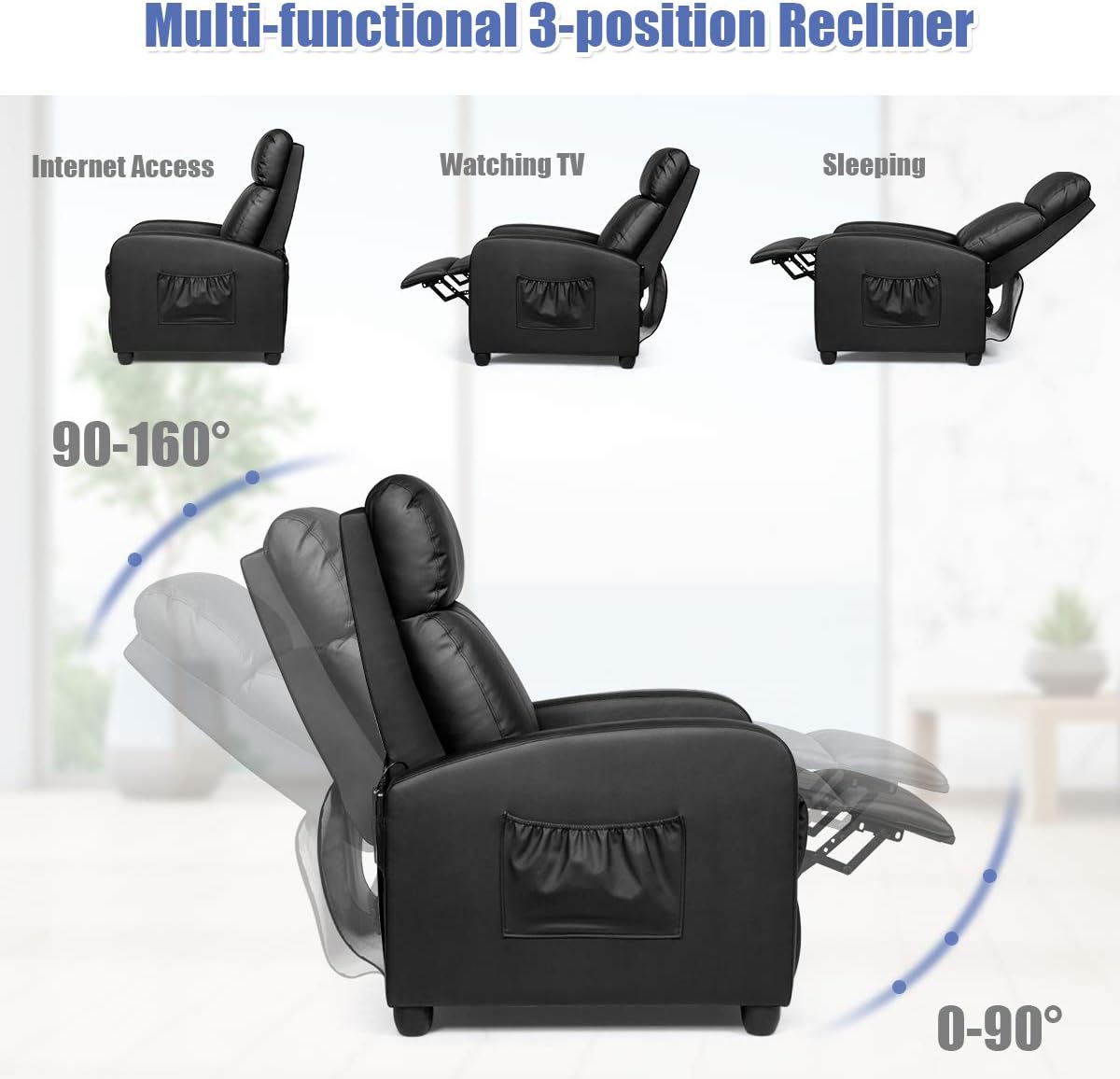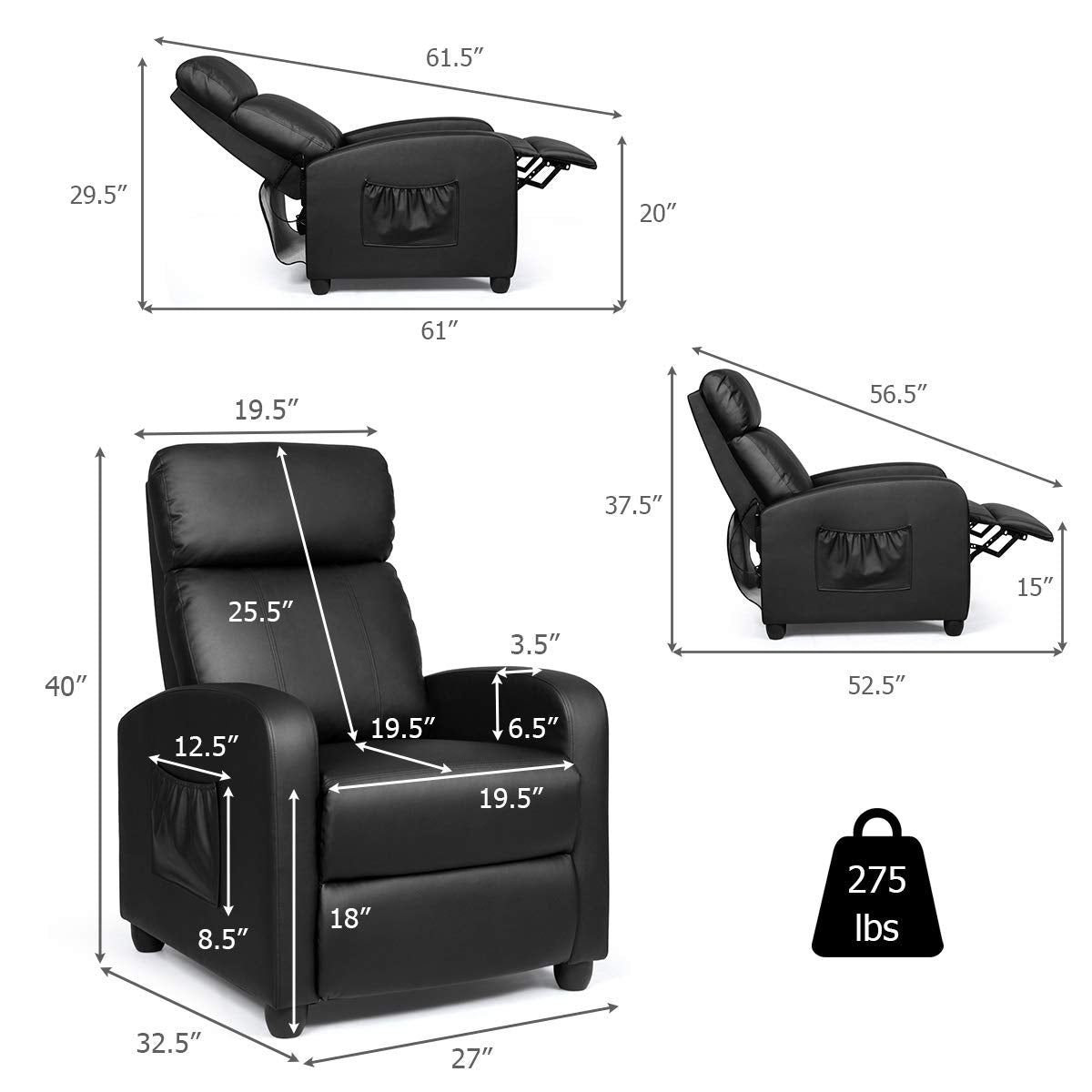 - Modern & Classic Style The recliner chair with pure color is stylish and classic, adding elegance to the room. It can be perfectly placed in offices, living rooms, and bedrooms, and blend with the surrounding environment well. Side pockets for convenient storage and smooth surface for quick maintenance.