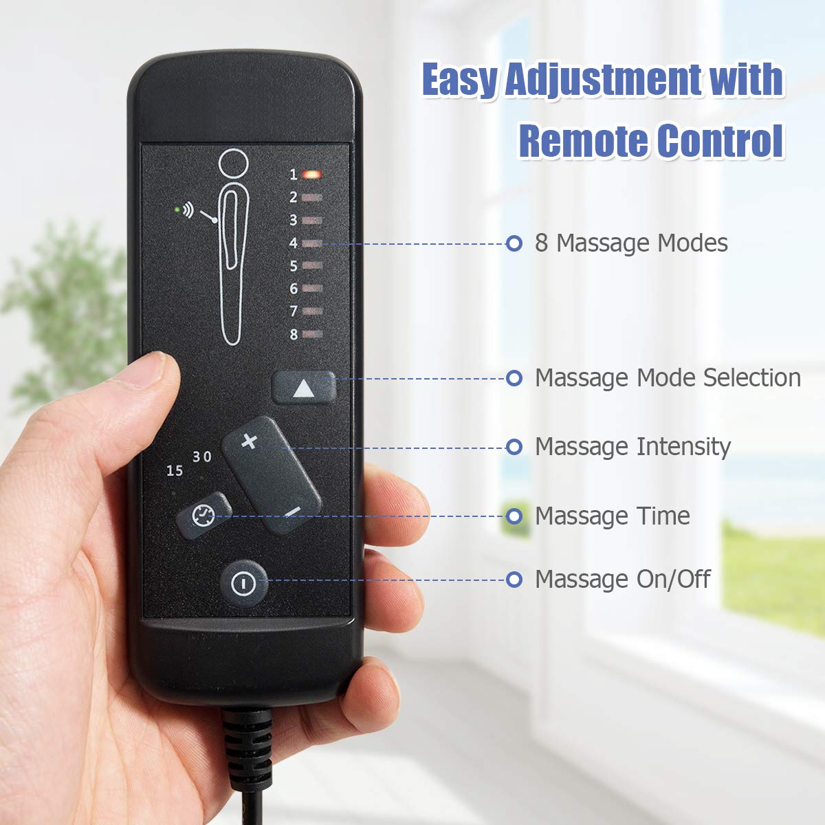 - Massage Chair for Luxurious Comfort It comes with 8 massage modes, 2 vibrating nodes on the lumbar and 3 intensities with a provided corded remote control for convenient selection. You can also set massage time in 15/30 minutes according to your require. Plus, it has passed UL certification to ensure safety.