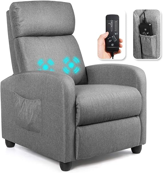 Recliner Chair, Massage Wingback Single Sofa w/Side Pocket, Fabric Recliner