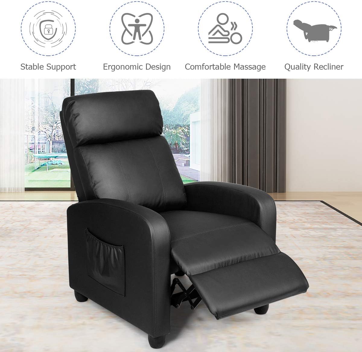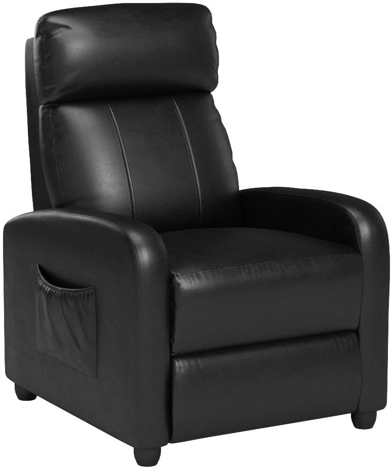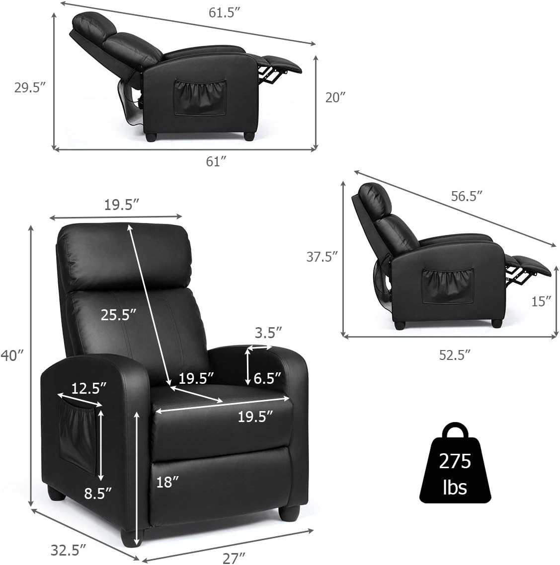 - Modern & Classic Style The recliner chair with pure color is stylish and classic, adding elegance to the room. It can be perfectly placed in offices, living rooms, and bedrooms, and blend with the surrounding environment well. Side pockets for convenient storage and smooth surface for quick maintenance.