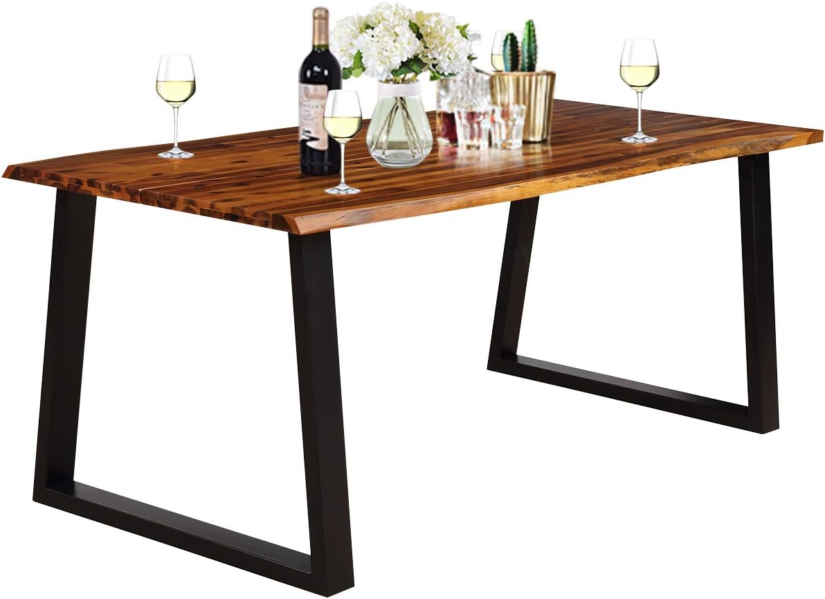 - Exquisite Workmanship: Crafted from the premium acacia wood that restores the texture of real wood and heavy-duty metal frame in trapezium design, this patio dining table effectively allows force deployed evenly and guarantees stability and durability. Thick panel makes the bearing performance even more adequate.