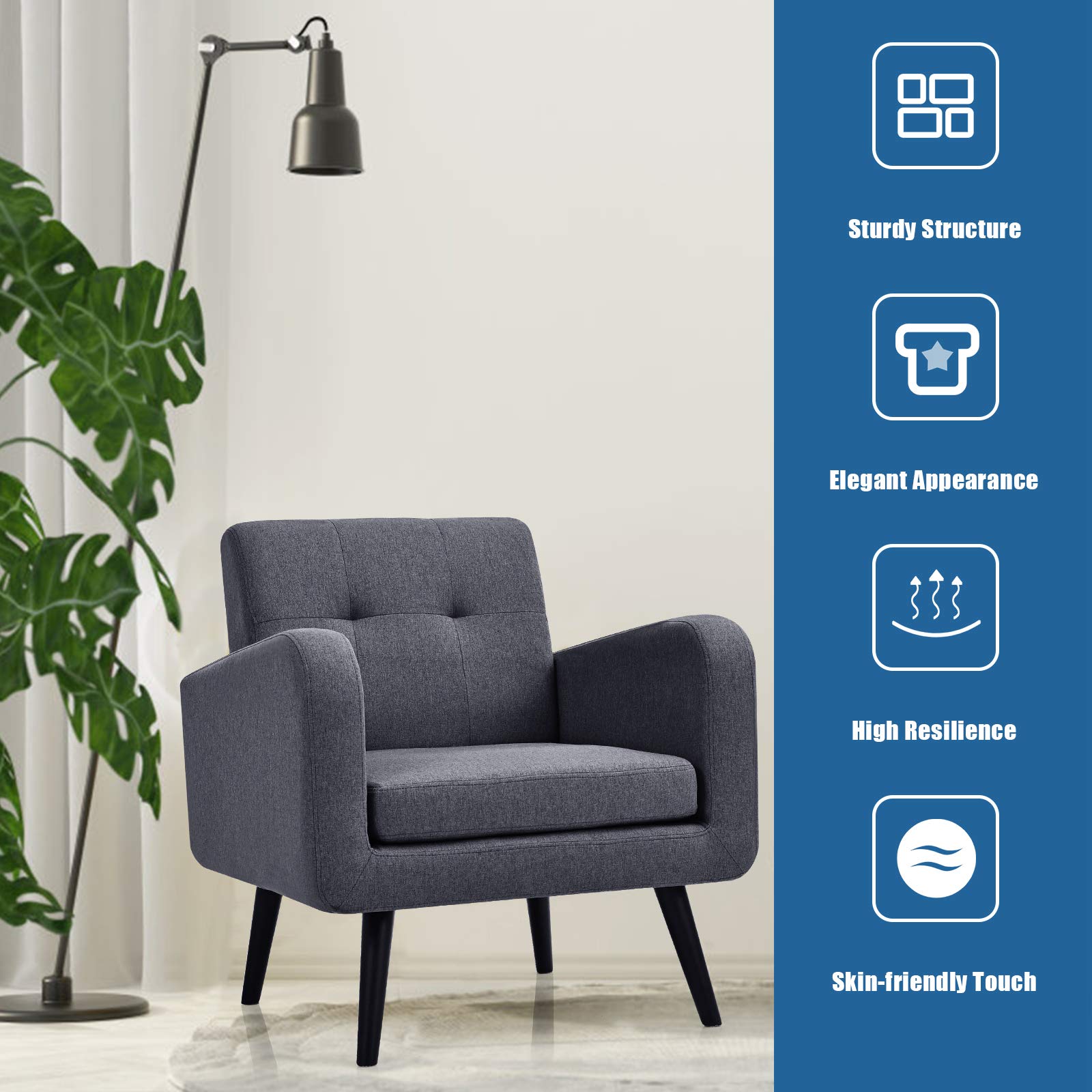 - Sturdy Structure with Rubber Wood Legs: Made of a premium wooden frame, this accent chair combines excellent sturdiness and lasting durability. 4 rubber wood legs will provide great support and stability, allowing the armchair to withstand up to 265 lbs without wobbling.