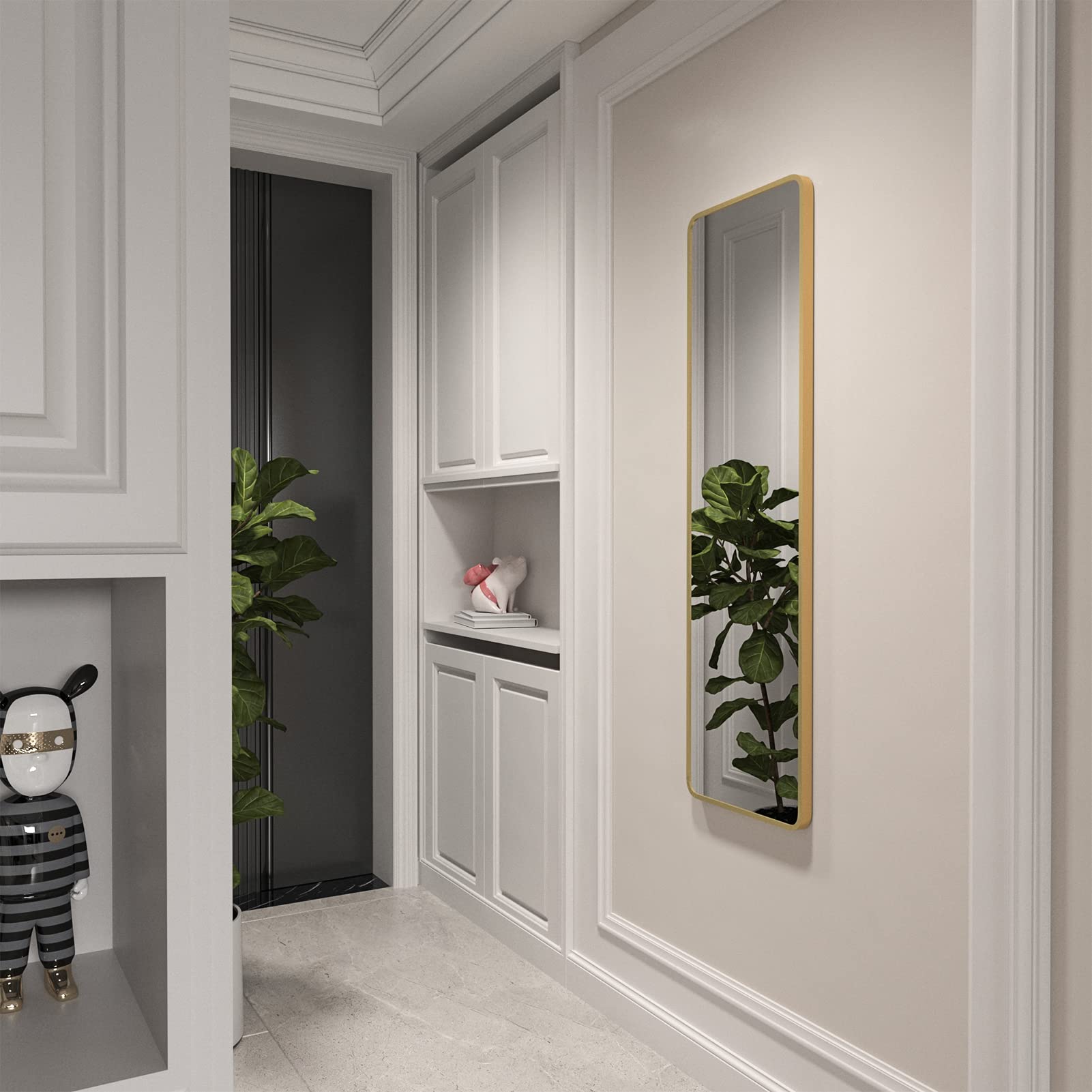 Gold Full Length Mirror Aluminum Framed, Modern Long Wall Mirror