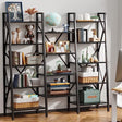 Modern Triple Wide 5 Tiers Bookshelf with Storage, Industrial Bookcase with 14 Open Display Shelves