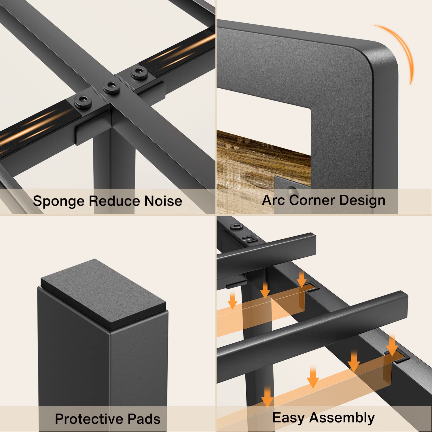 - NOISE-FREE & PROTECTIVE DESIGN The non-slip thick square metal frame and sponge strip on the central support bar help reduce the noise to the maximum extent, which can help you enjoy your quiet and sweet dreams. It also has a careful protective design, such as the foot pads on each support leg to prevent scratches on your floor, and the arc corner of the woodboard designed to help avoid bumps and scrapes.