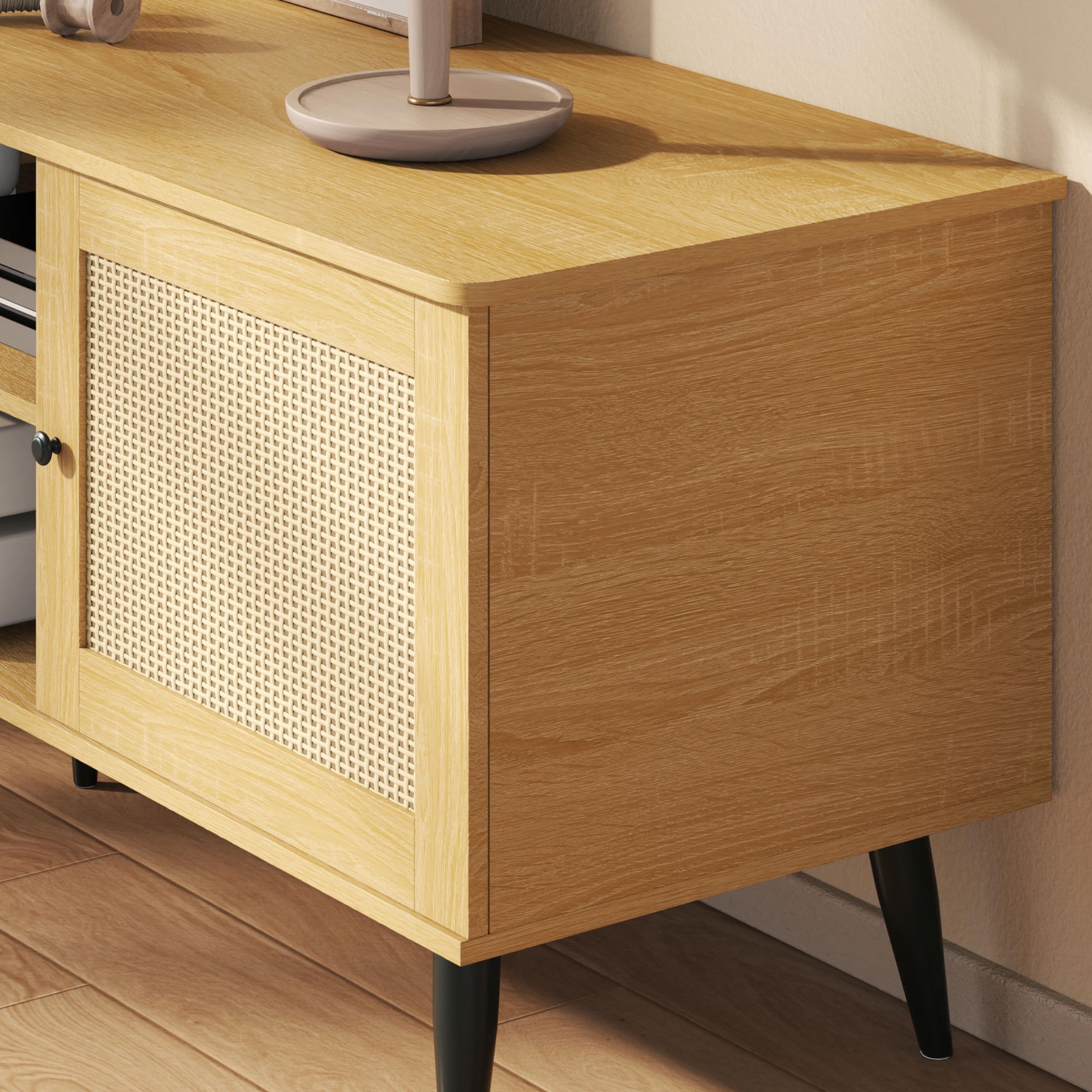 TV Stand for Living Room, for 55 Inch TV, Rattan Entertainment Center with 2 Cabinets,