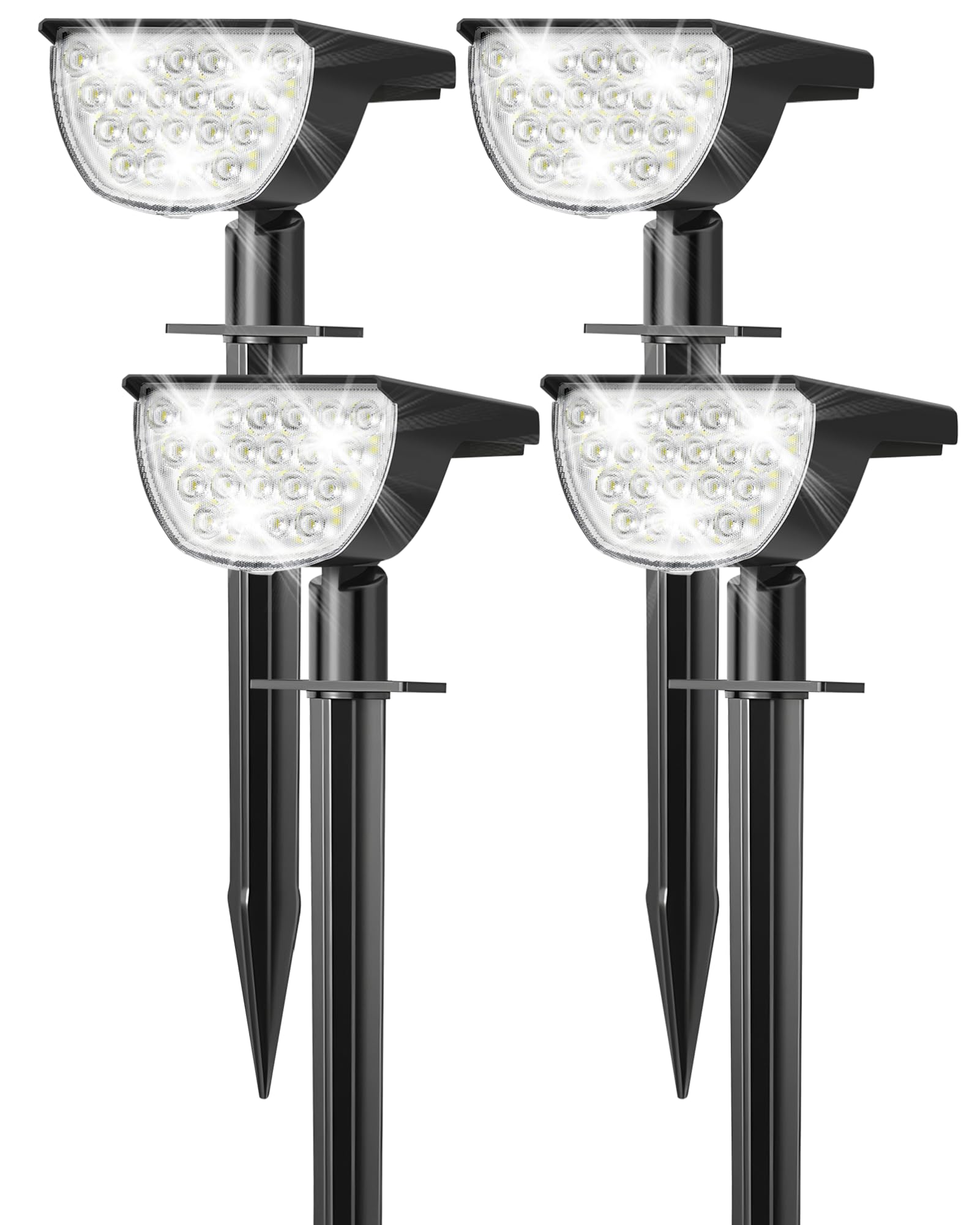 - 3-Level Adjustable Solar Spot Lights Outdoor: GKGG solar landscape lights outdoor combines intelligence and efficiency in one, allowing you to easily switch between three lights modes with just one button - Low lights mode(20 hrs)/Medium lights mode(10 hrs)/High lights mode(6 hrs). The solar panel can automatically determine whether it is day or night. Automatic switching of charging and lighting modes.