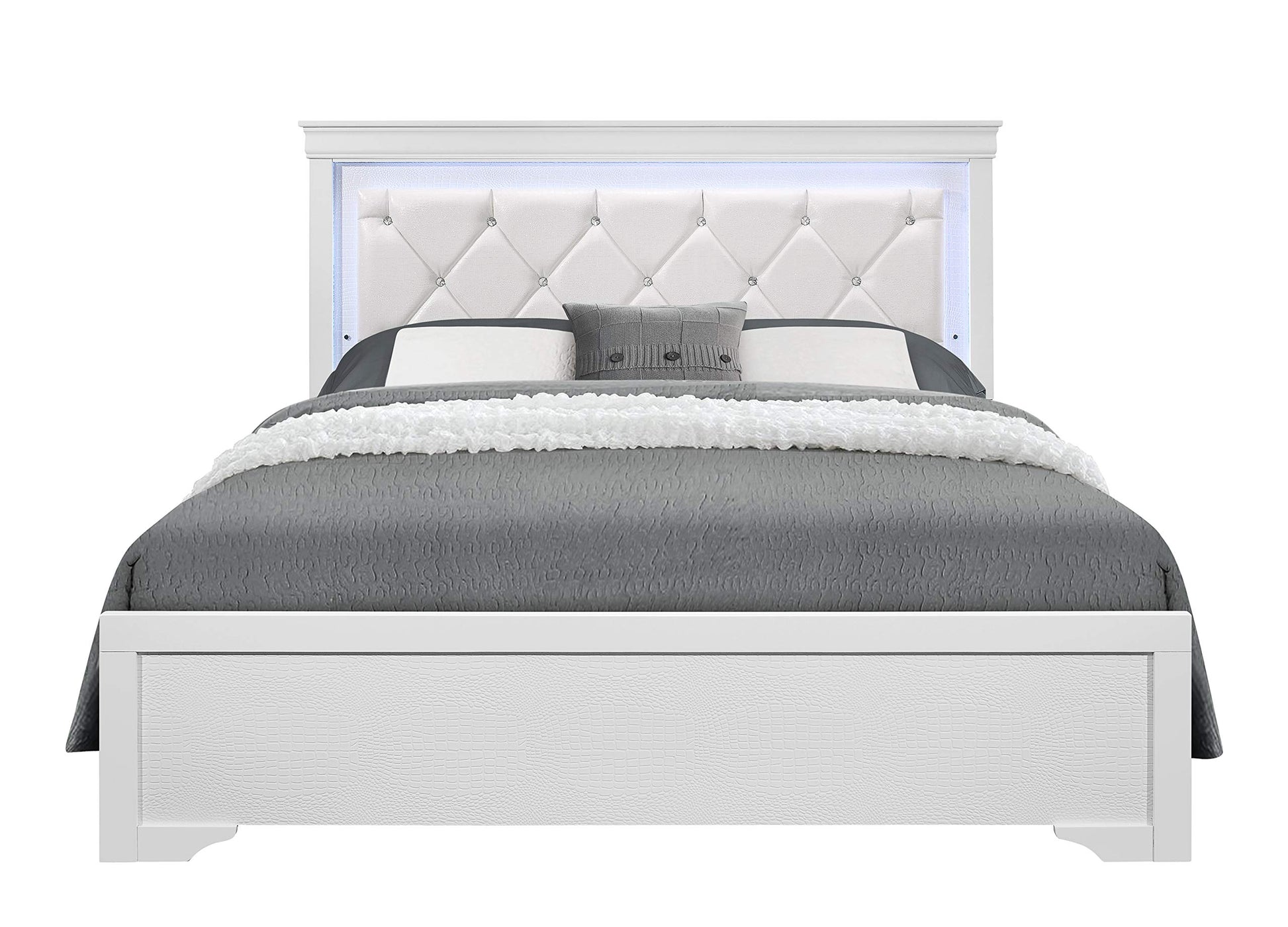 Global Furniture USA Pompei Metallic White Full Bed w/LED Light